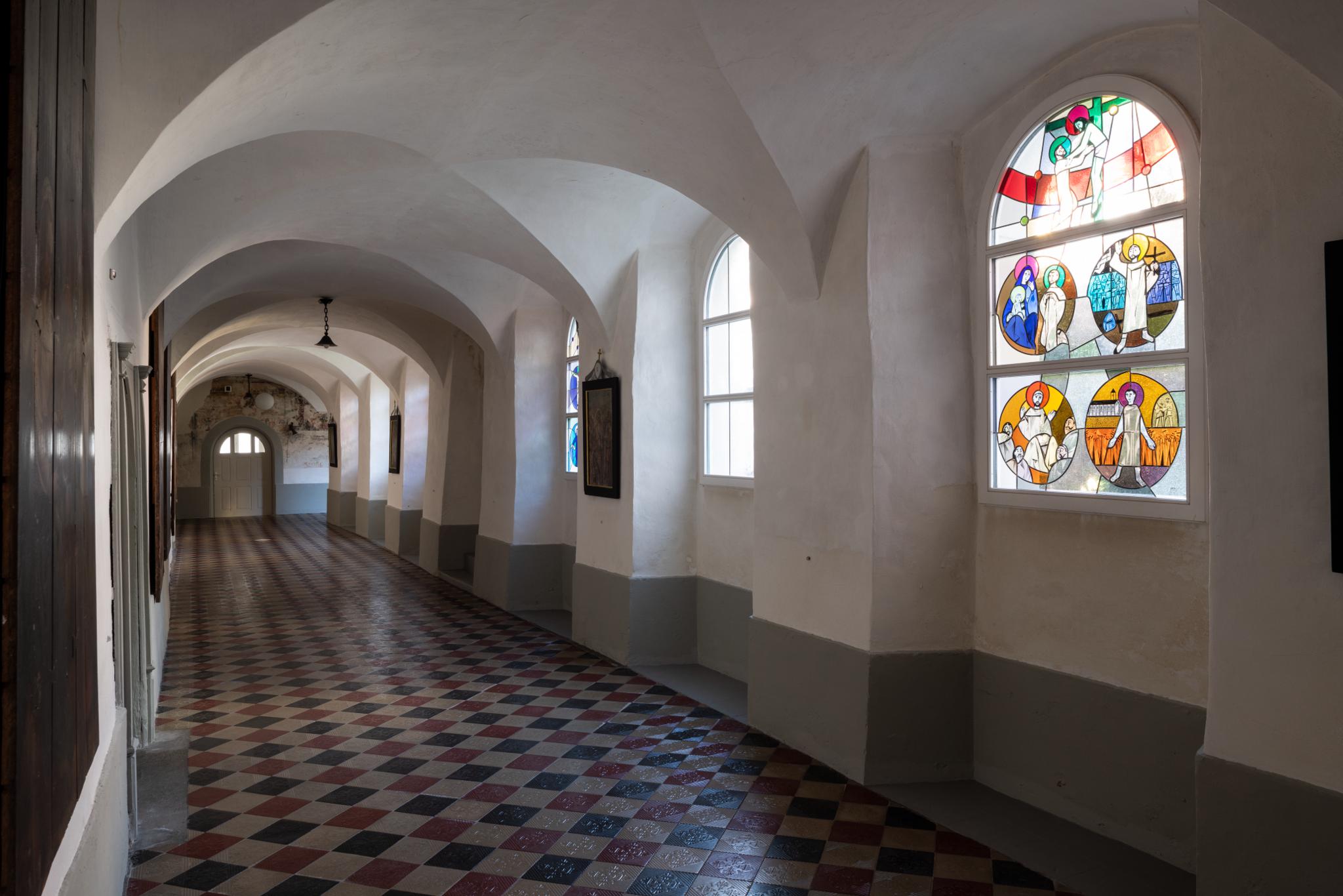 In den 1990er Jahren fertige das Engelburger Glasmaleratelier Stäubli (Heinrich Stäubli, Ernst Holenstein) Glasmalereien für vier Rundbogenfenstern des Kreuzgangs an (HS_1072; HS_1073; HS_1074; HS_1075).