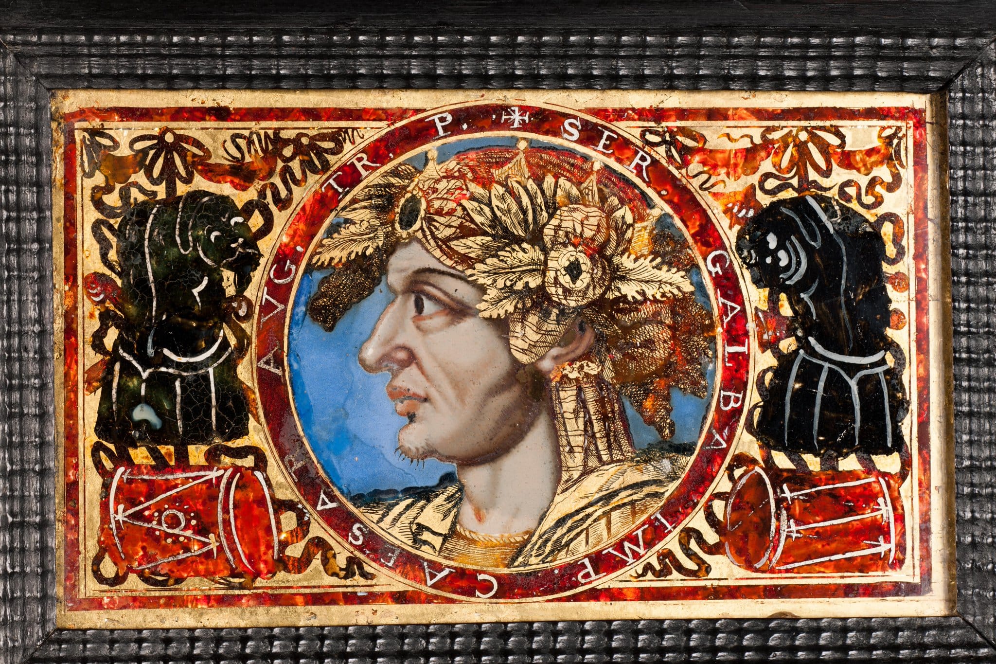 Hinterglaseinlage: Bildnis des Cäsars Galba in Medaillon