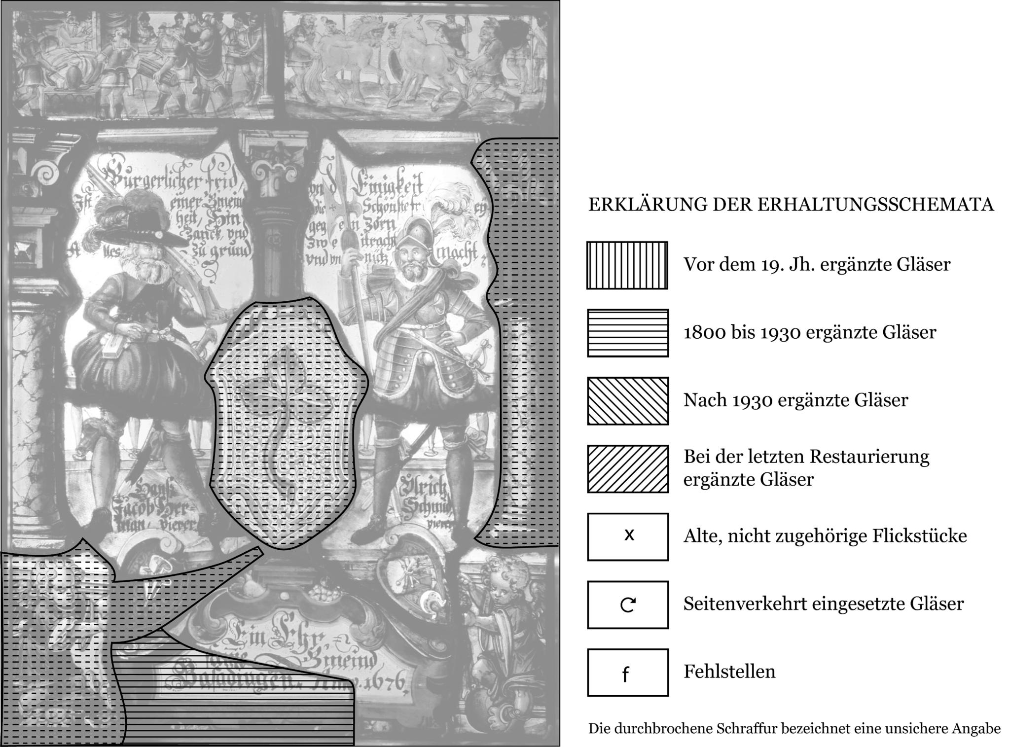 Schema Gemeindescheibe Basadingen mit den Mitstiftern Hans Jakob Hermann und Ulrich Schmid