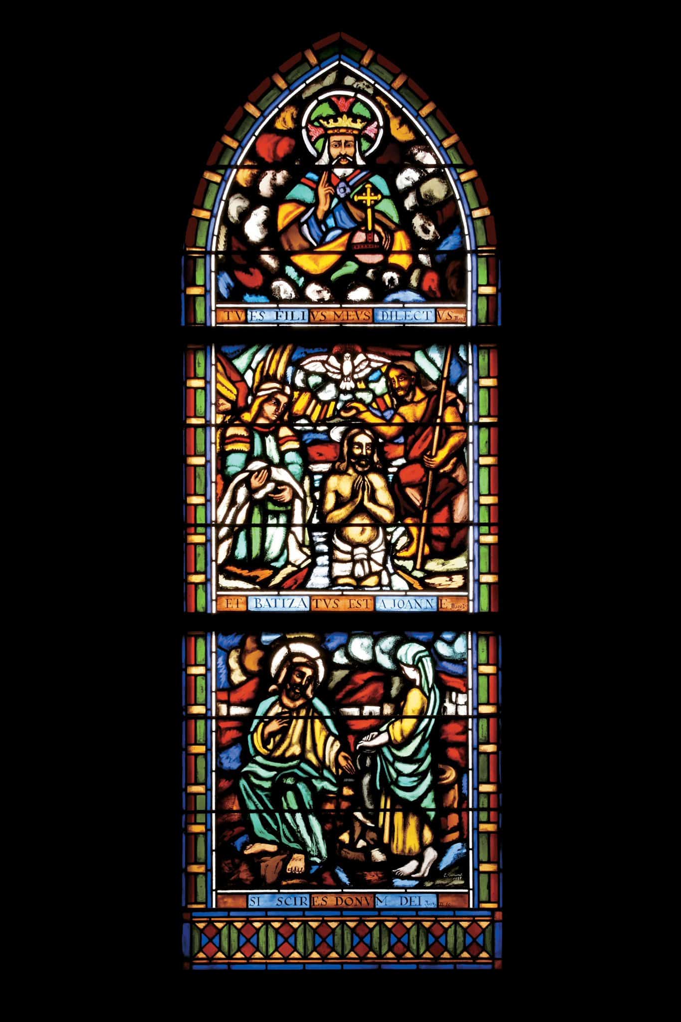 Dieu apparaît à Jésus après le Baptême et lui dit: “Tu es mon fils, l’aimé dont je suis content”. Jean baptise le Christ, dans les eaux du Jourdain. Le Christ demande à boire à la Samaritaine arrivant au puits.