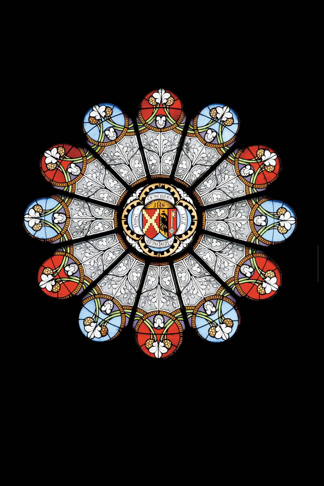 Rose aux motifs végétaux avec au centre les armoiries de Genève et Genthod