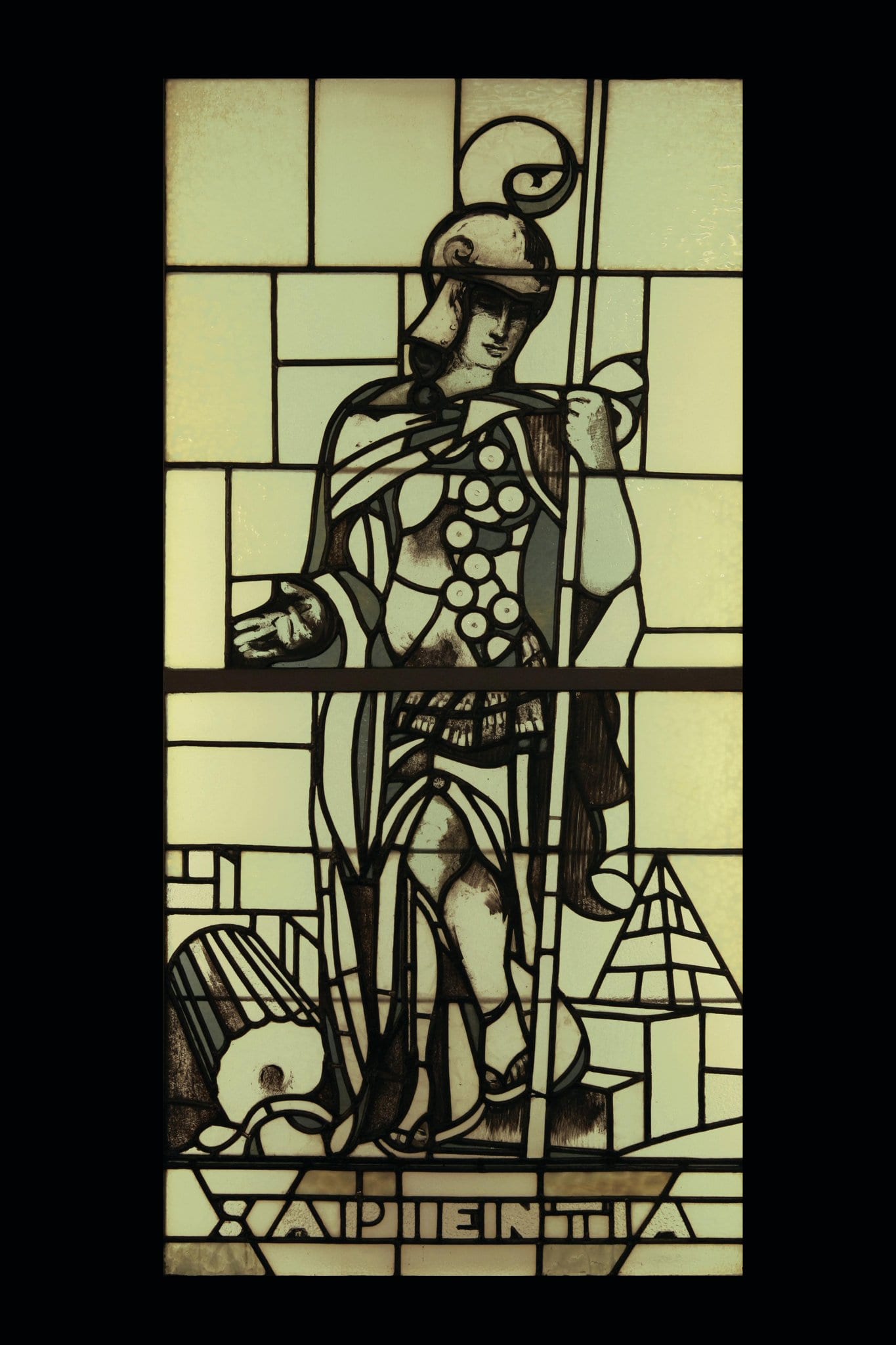 Personnification de la sagesse en un soldat romain tenant une lance. A ses pieds, une colonne brisée et une pyramide.