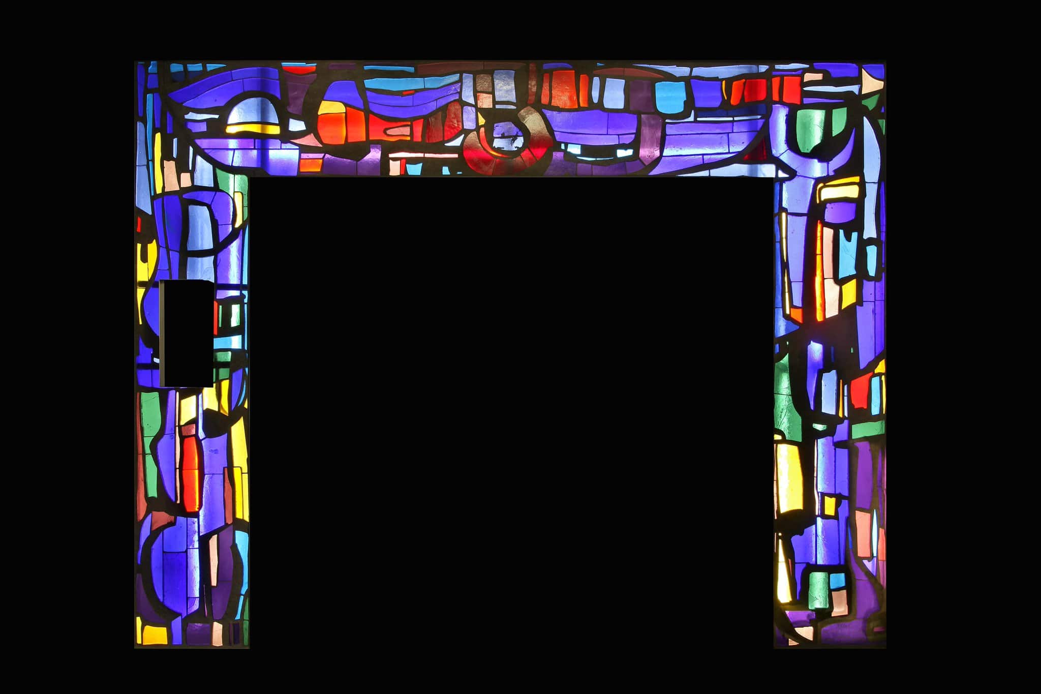 unbekannt · C’est un vitrail réalisé par des étudiants de 4e année (classe du professeur Albert Aubert) du Centre de formation professionnelle Arts Appliqués (AA), Genève.