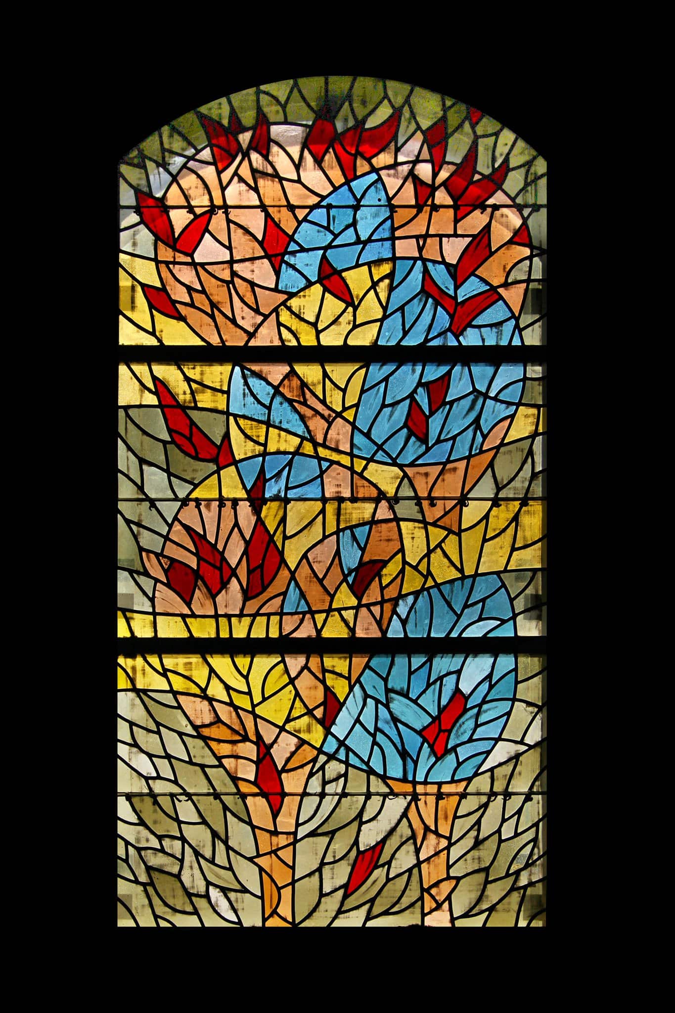 Cinq arbres symbolisent les cinq continents qui rendent gloire à Dieu.