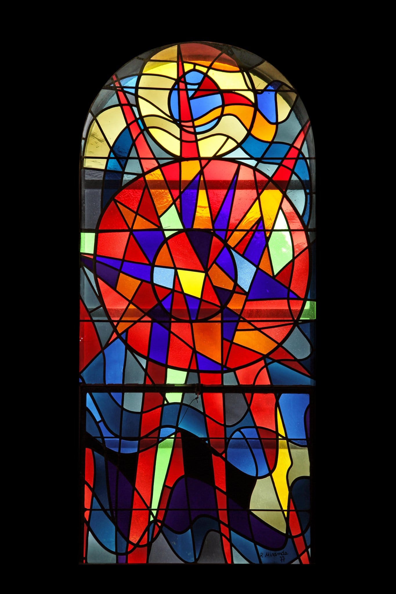 Une étoile rayonnante rouge, orange et bleue figure au centre d’un fond coloré.