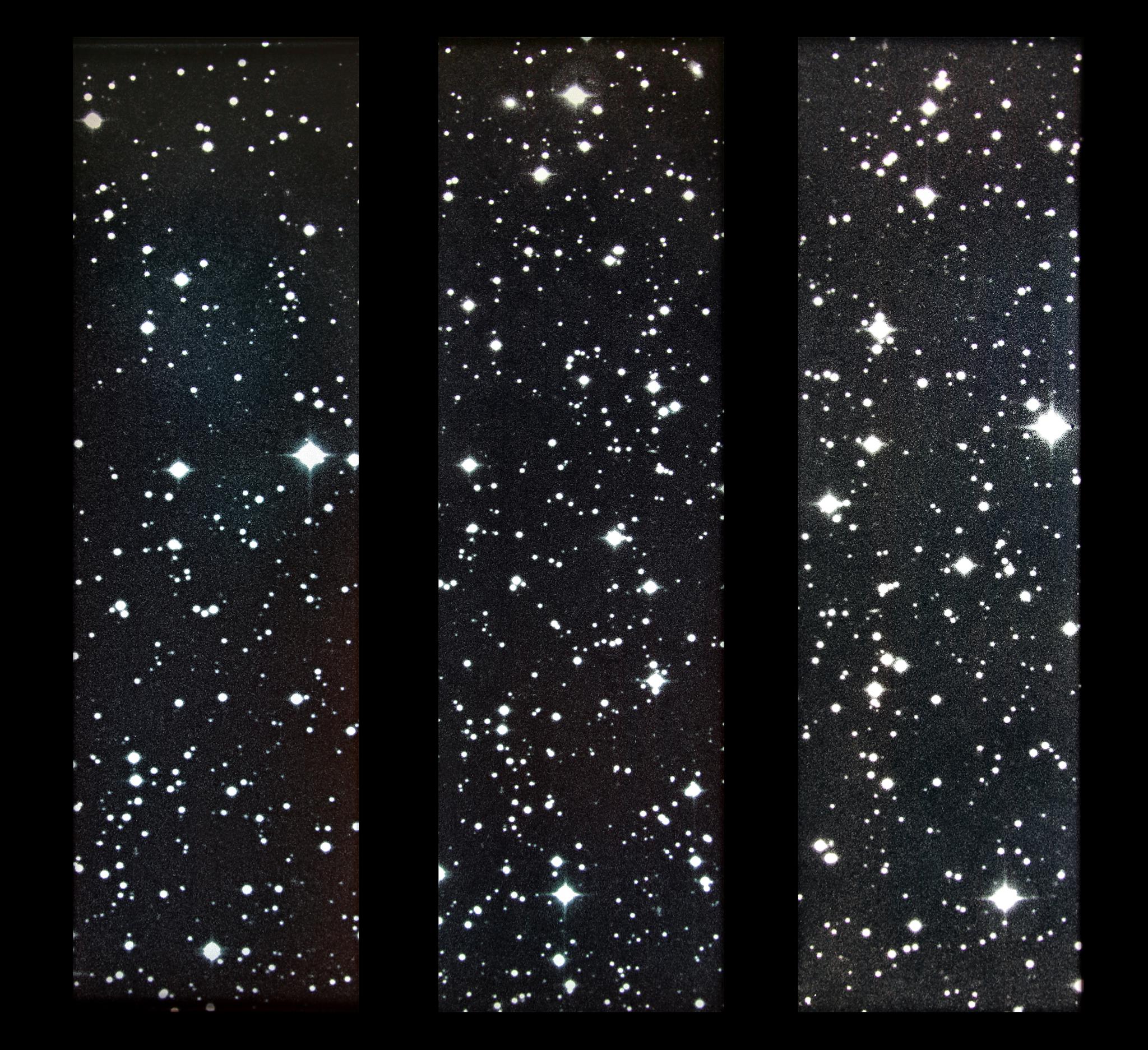 Les trois fenêtres nous montrent une vue de la région centrale de l’amas globulaire Messier 68, distant de 35 millioins d’années-lumière. Les amas globulaires sont constitués d’étoiles très anciennes appartenant aux premières générations de notre galaxie.