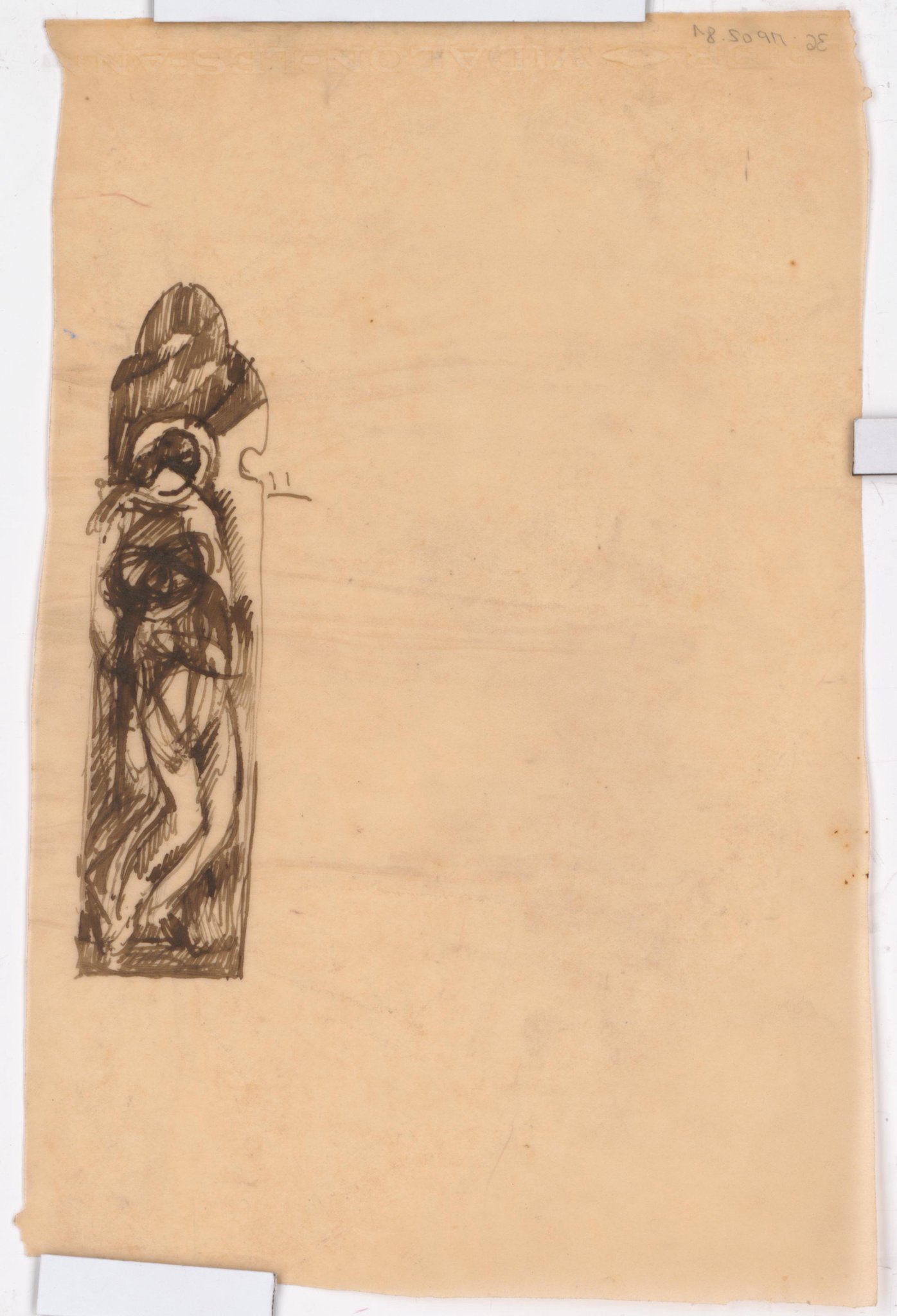 Esquisse du vitrail de la Crucifixion et des personnages de la lancette de droite