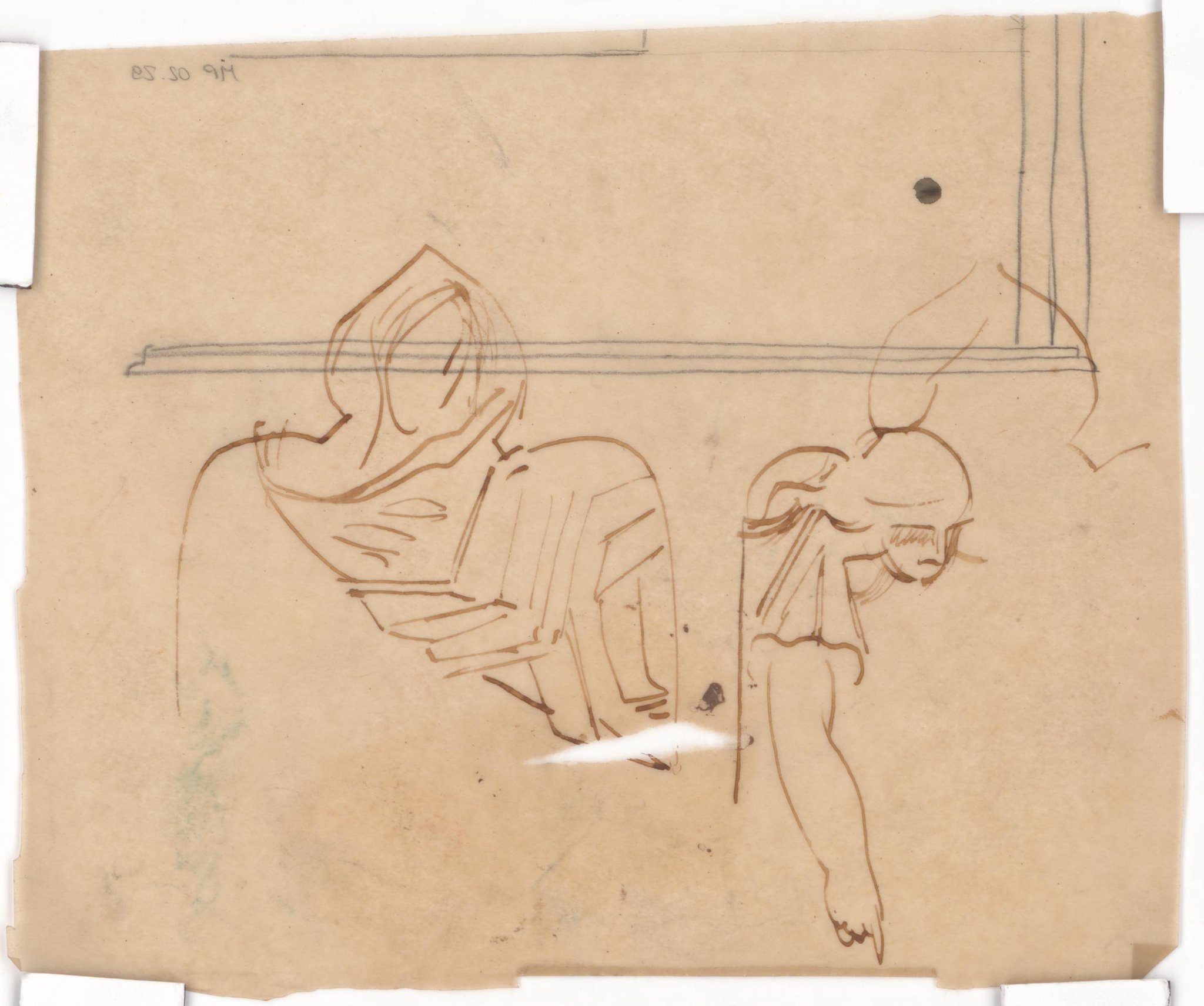 Ce projet fait probablement partie des premiers travaux de Poncet pour le vitrail des quatre Evangélistes, où il étudie la posture et le mouvement de l'ange de saint Mathieu.