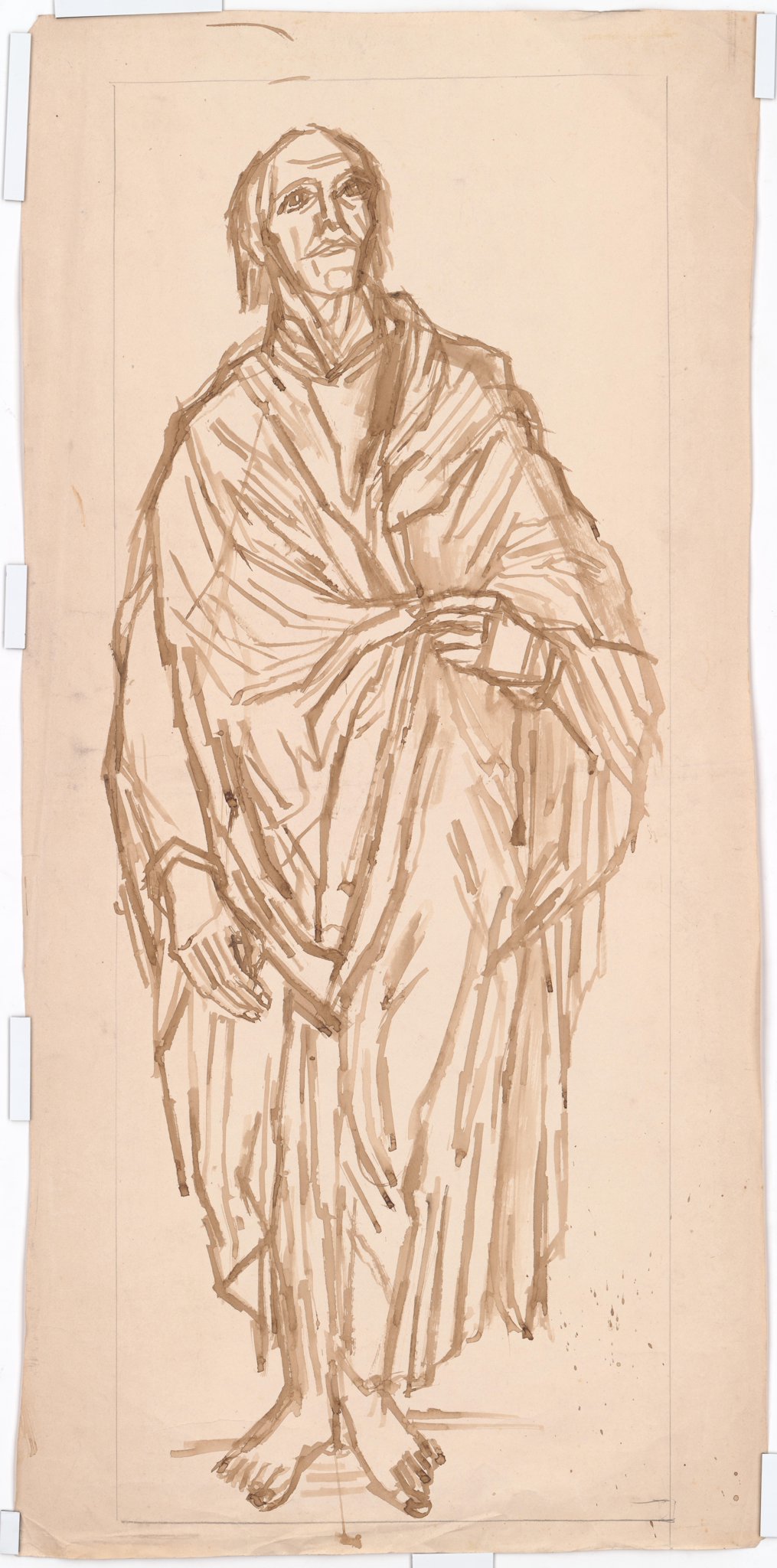 Cette esquisse n'a pas pu être rapprochée avec certitude de l'un ou l'autre des prophètes de l'église Saint-Sigismond. Il fait probablement partie de ce corpus car son style correspond aux autres cartons de ce cycle.