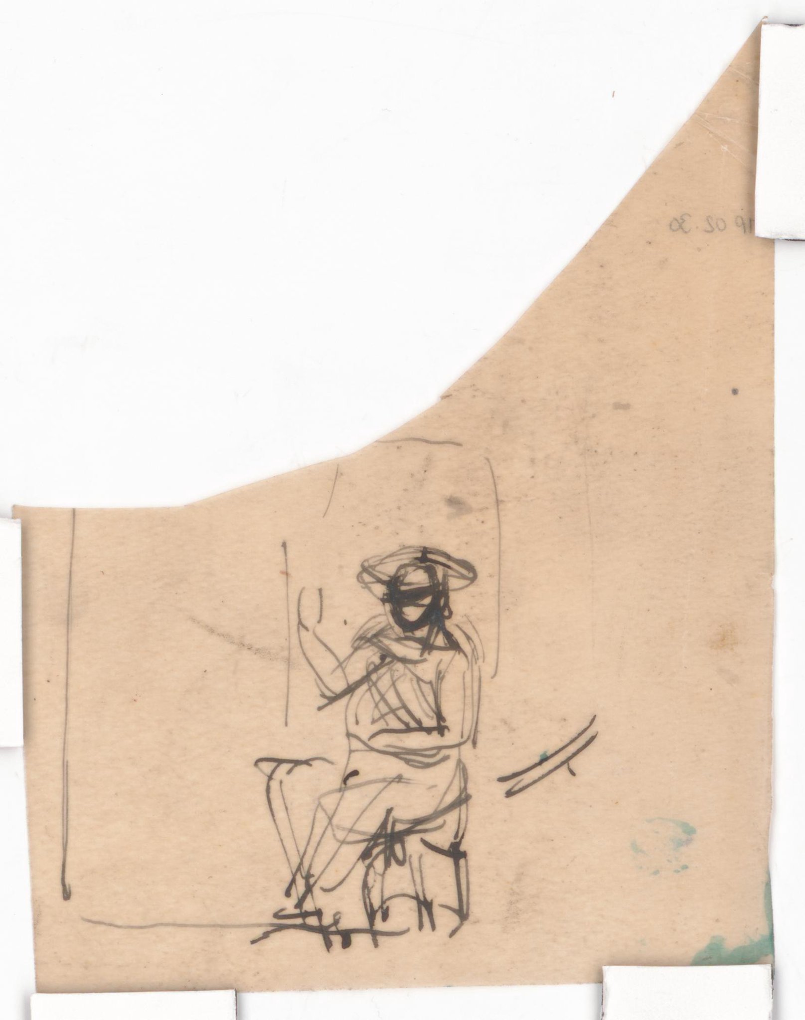 Ce projet fait probablement partie des premiers travaux de Poncet pour le vitrail des quatre Evangélistes, où il étudie la posture et l'attitude de saint Mathieu assis.