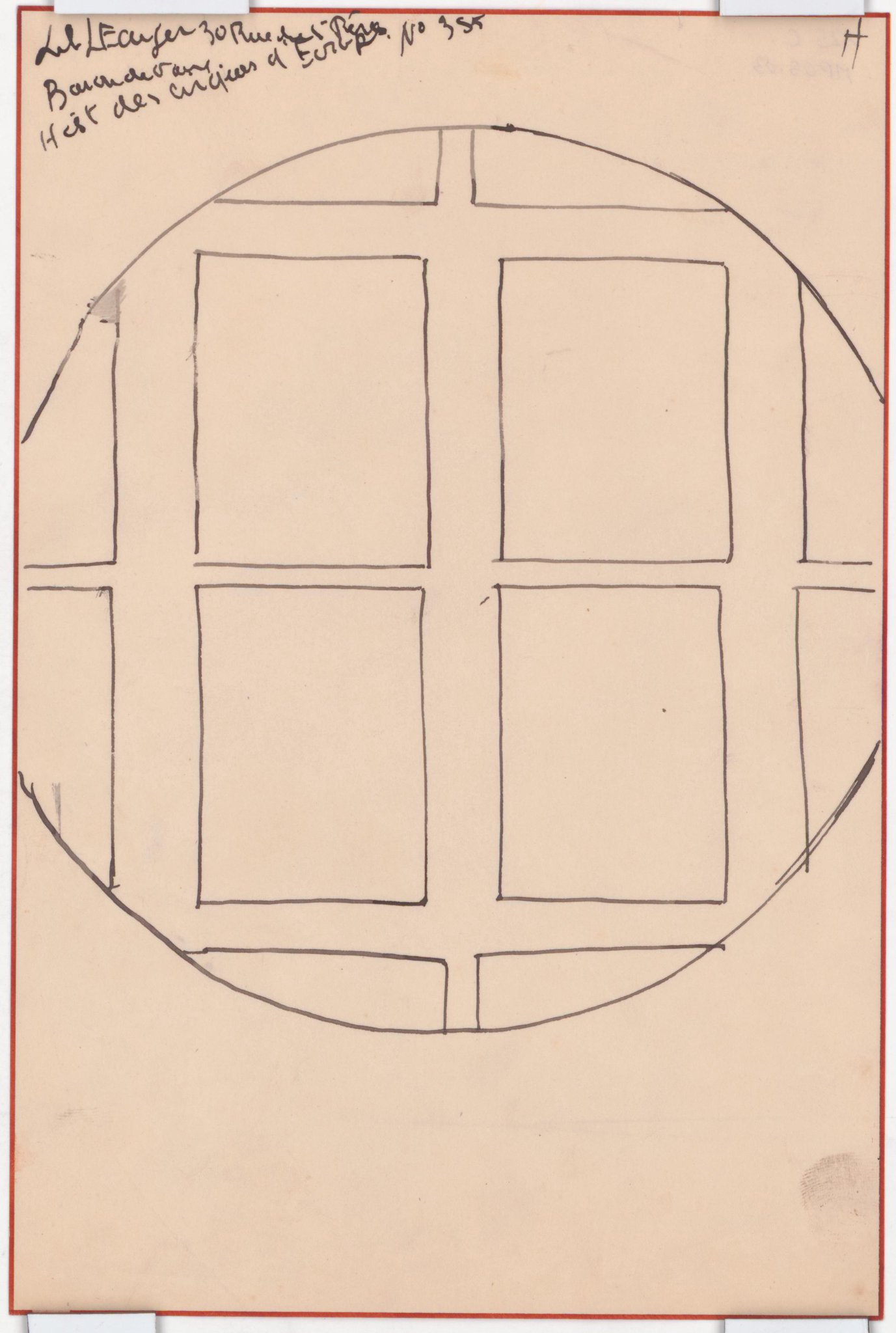 Étude du découpage en zones rectangulaires pour le vitrail de forme ronde de la Visitation.