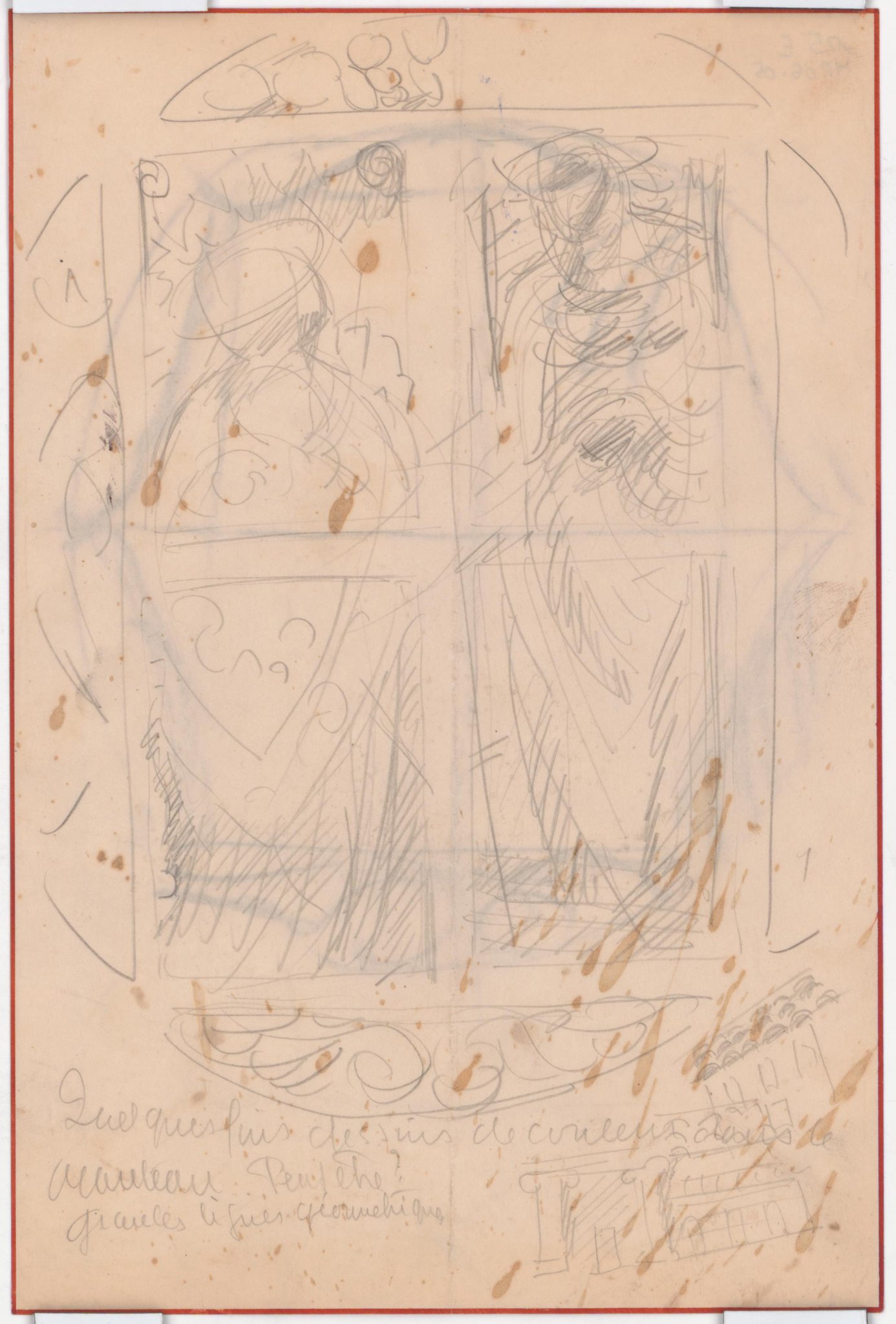 Au verso : petite esquisse étudiant le découpage du vitrail.