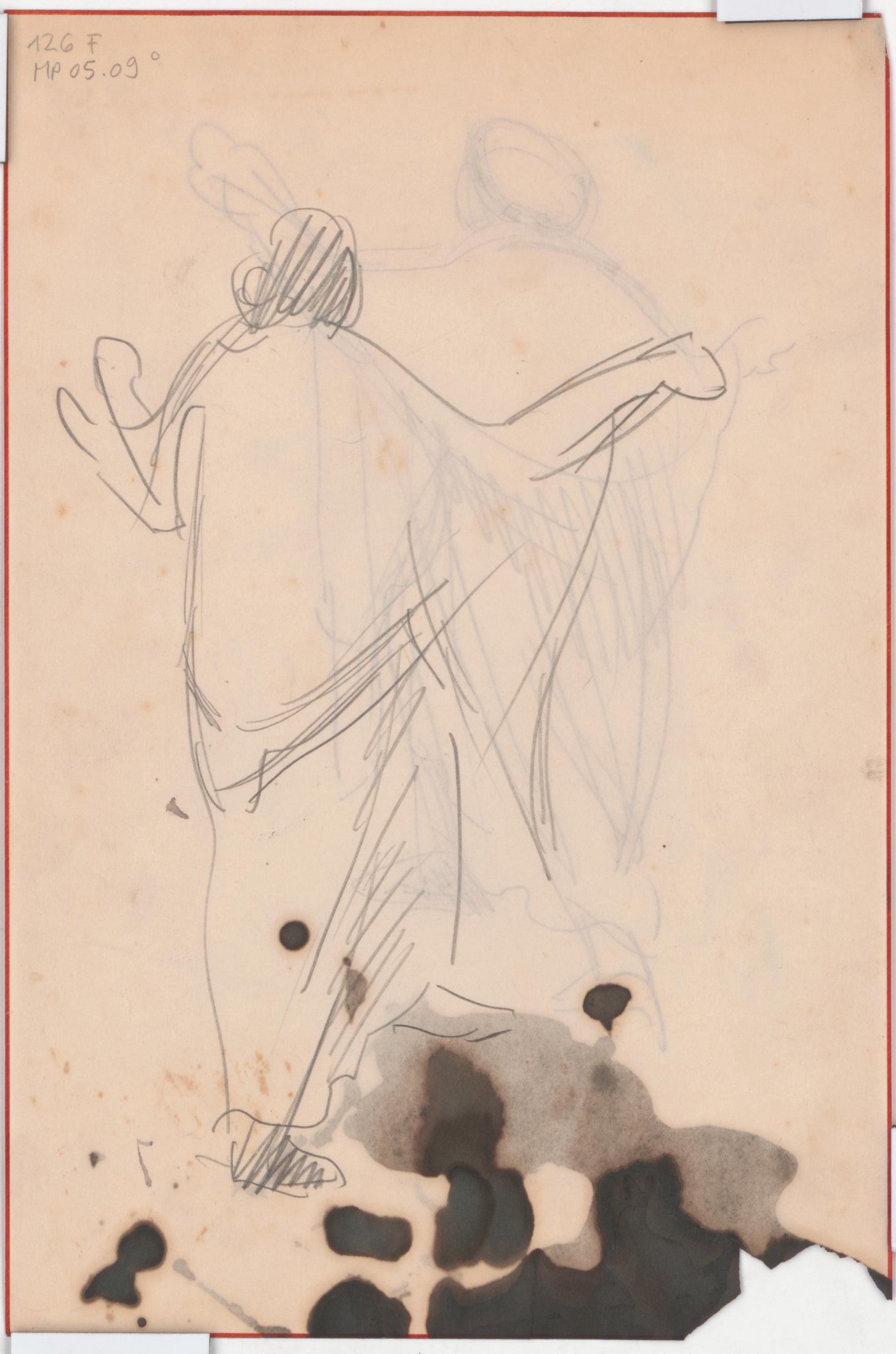Verso : esquisse avec Elisabeth (?) de dos tendant les bras
