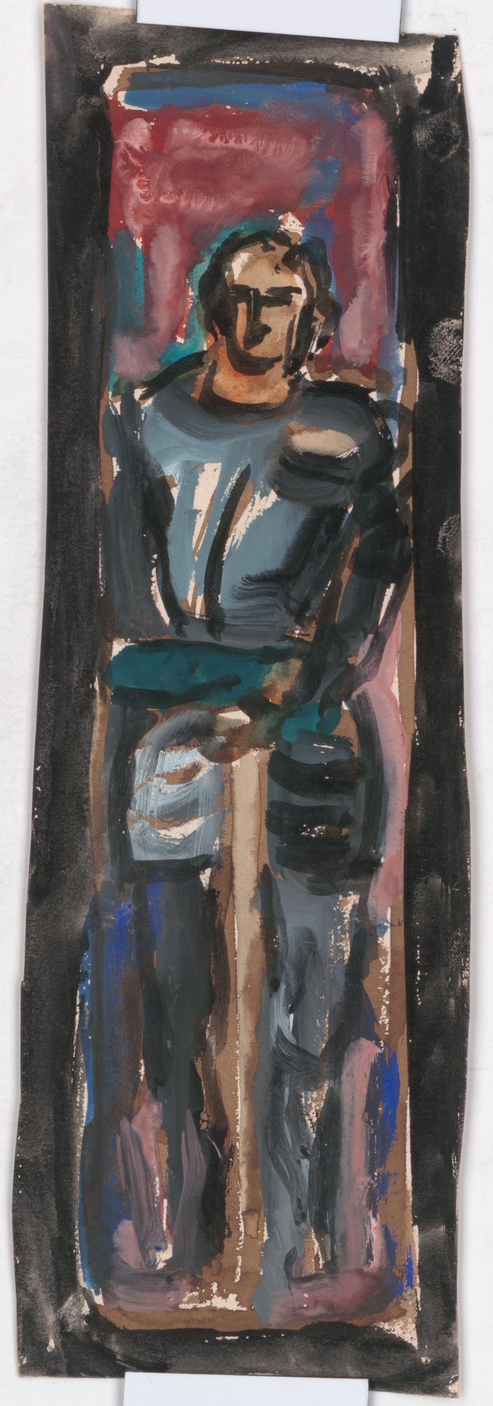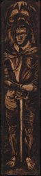 Saint Maurice en pied en armure, prenant appui sur son épée.