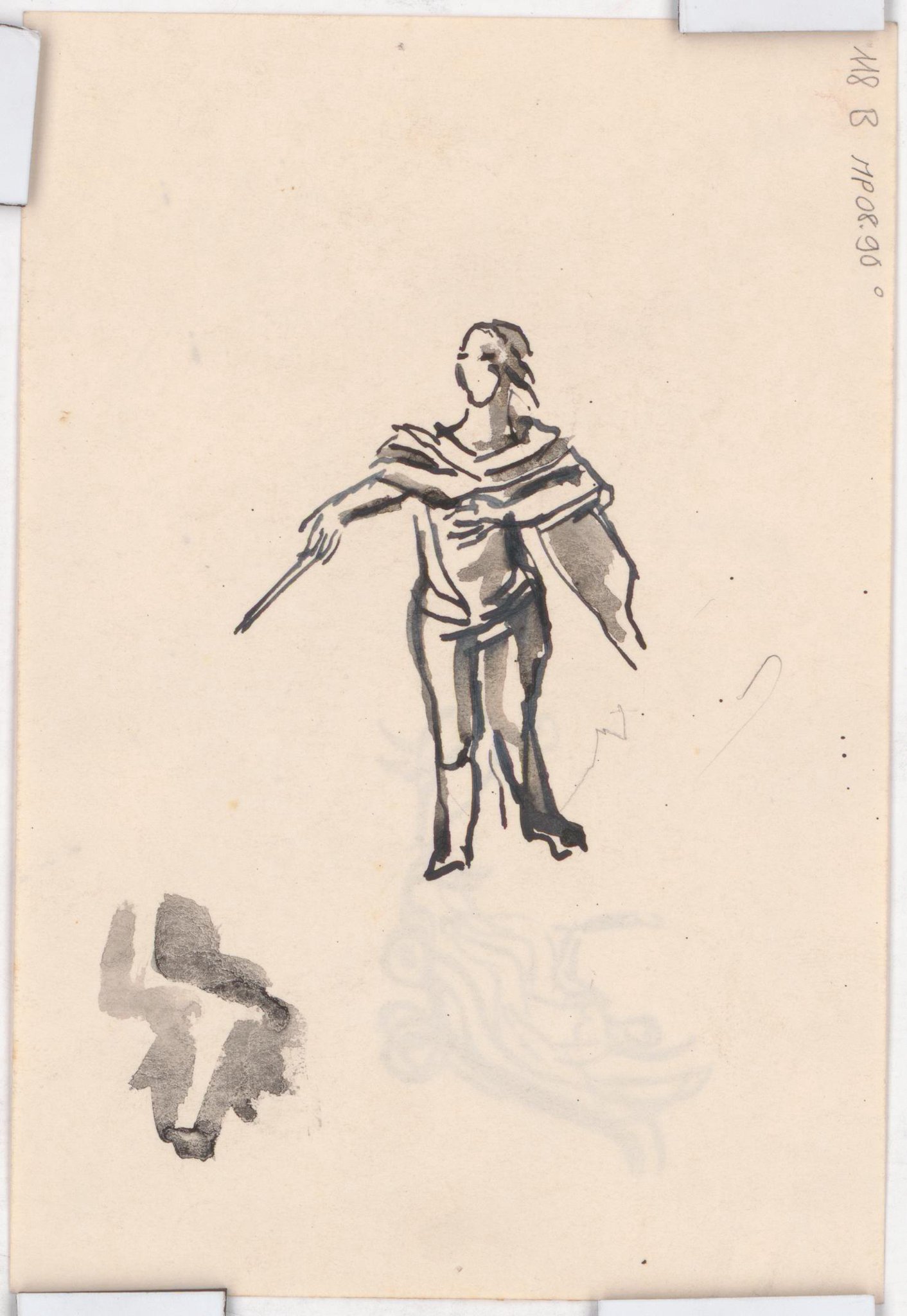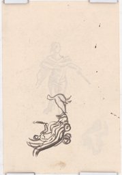 Esquisse pour des vitraux sur le thème de la "carte du ciel" : personnage debout tendant un bâton ou baguette. Au verso : figure féminine assise dans un char tiré par un oiseau.