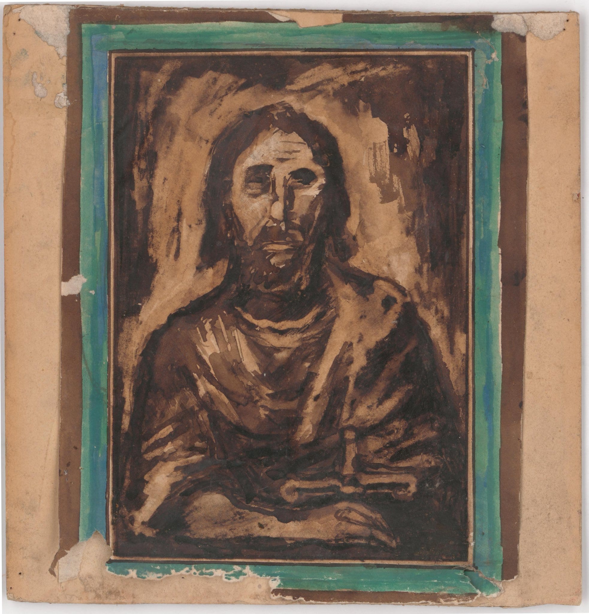 Ce travail préparatoire a été réalisé par Marcel Poncet dans le cadre de la commande de quatre vitraux des Evangélistes pour la Reformierte Kirche de Schlieren (Zurich), réalisés en 1937. Poncet obtient cette commande par l'intermédiaire de l'architecte de l'édifice, Walter Henauer (1880-1975), qu'il a rencontré à l'occasion de ses séjours parisiens. Suite à la pose des vitraux, il propose pour cette même église un projet de carte du ciel (représentations du zodiaque, des planètes et leurs personnifications), qui est refusé par la commission, pour des raisons avant tout financières (REYMOND, 1992, pp. 70, 170 ; "Neue reformierte Kirche in Zürich-Wollishofen und neue Kirche und Renovation der alten Kirche in Schlieren : Architekten W. Henauer & E. Witschi SA, Zürich.", 1938, pp. 297-304).
