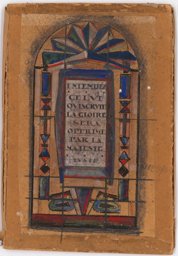Louis et Marcel pensaient à l'origine réaliser seulement six vitraux avec des figures de roi et de prophètes en camaïeu, et deux fenêtres décoratives contenant des prophéties, avant de s'orienter vers huit vitraux avec des prophètes uniquement et en couleur, en automne 1943. Cette esquisse correspond à l'un de ces premiers projets avec une prophétie. Elle peut donc être datée entre 1941 (début supposé de la commande, d'après la correspondance échangée entre l'artiste et son frère, le chanoine Poncet) et 1943. Cf: Lettre de Marcel Poncet à Philipp Etter, Président de la Commission fédérale de la Fondation et chef du Département de l’Intérieur, [octobre 1943], Dossier "Vitraux, Eglise Saint-Sigismond, Saint-Maurice, 1941-1947", boîte "VITRAUX II, 1932-1947", fonds Poncet, Vitrocentre Romont.