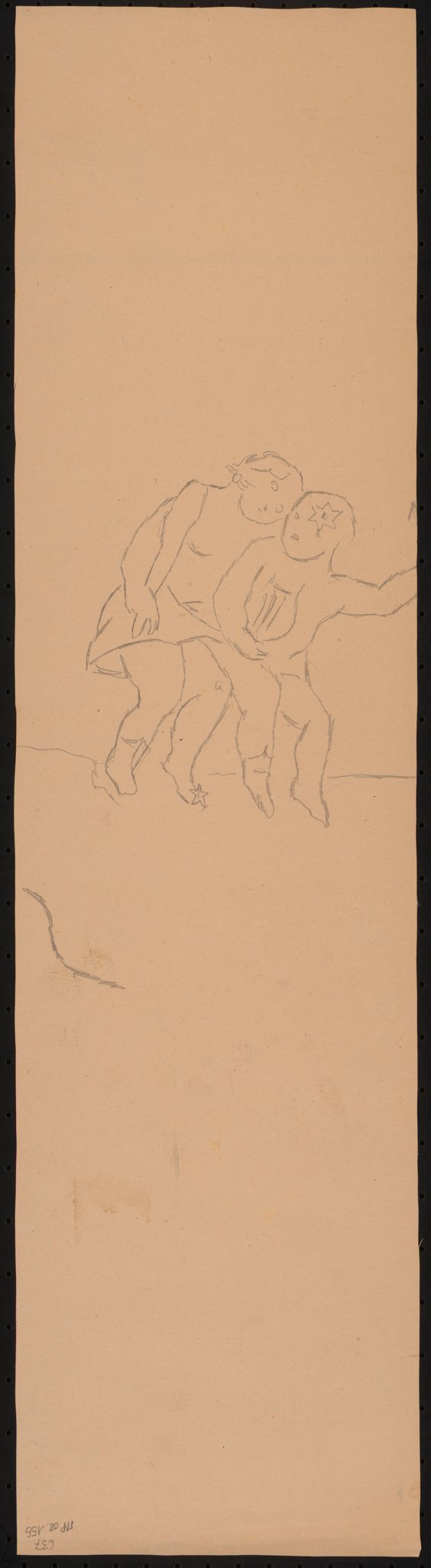 Projet pour les vitraux sur le thème de la "carte du ciel": personnification du signe des Gémeaux, assis côte à côte, celui de droite tenant une lyre contre lui.