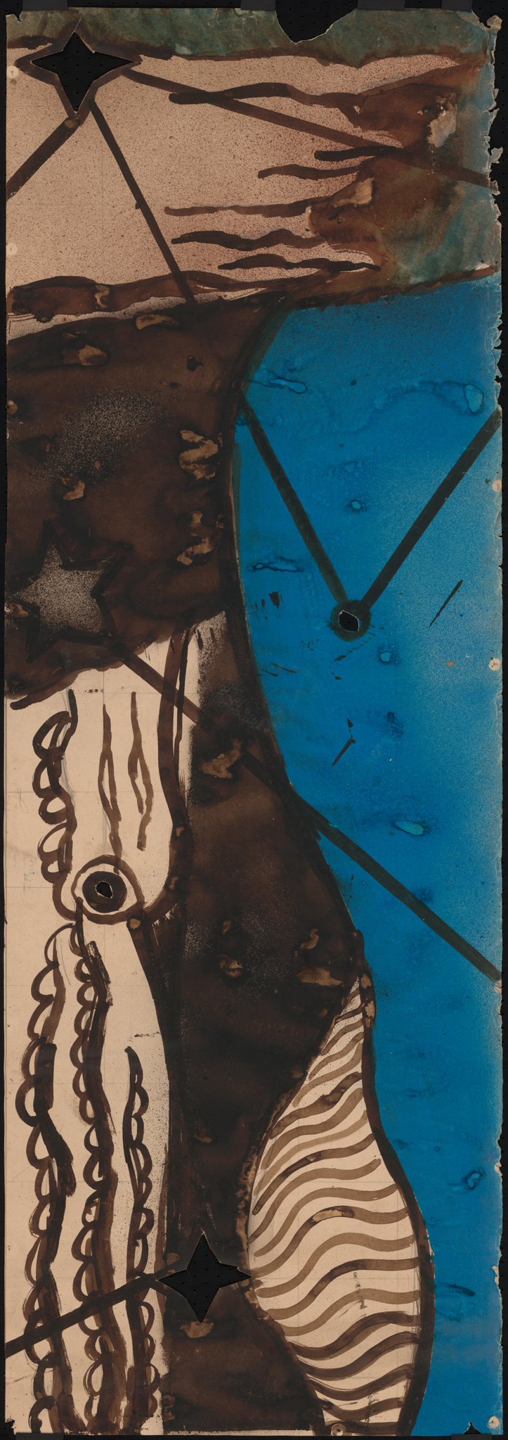 Carton pour des vitraux sur le thème de la "carte du ciel" : partie supérieure droite de la représentation de la constellation de la Lyre. La composition est traversée par les lignes des constellations et parsemée d'étoiles découpées.