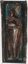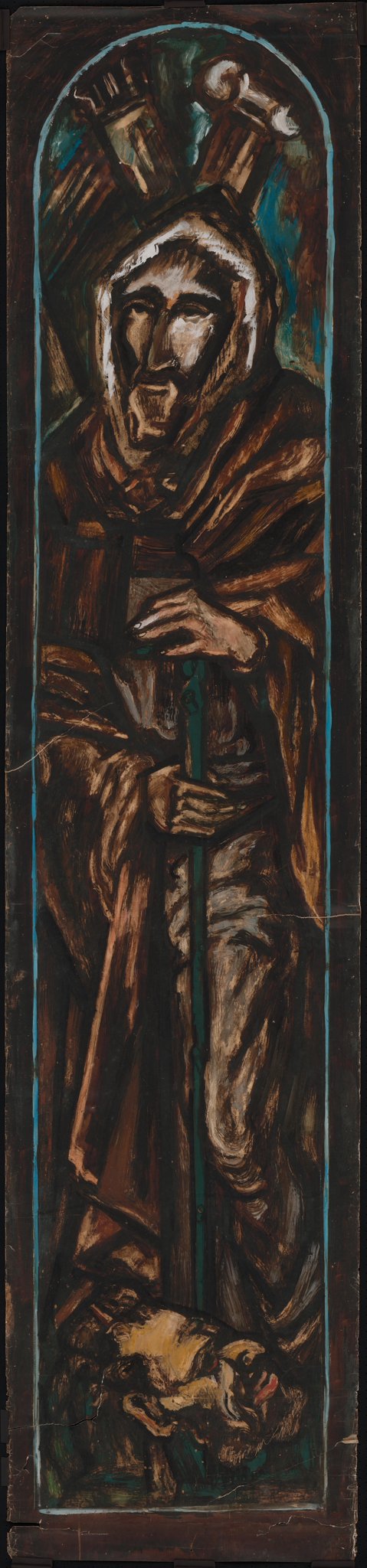 Il s'agit du carton définitif en couleur pour le vitrail de saint Bernard.