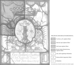 Unter zurückgezogenem grauem Vorhang ist vor blauem Grund das Wappen des Venners Anton von Graffenried auf einen teppichgeschmückten Podestaufsatz gesetzt. Es befindet sich in einer von zwei Palmwedeln umfassten und von einer Grafenkrone überhöhten Rollwerkkartusche. Am Fuss steht vor dem grauen Podest mit seitlichen Rundbogenöffnungen eine schlichte Tafel mit der Stifterinschrift.