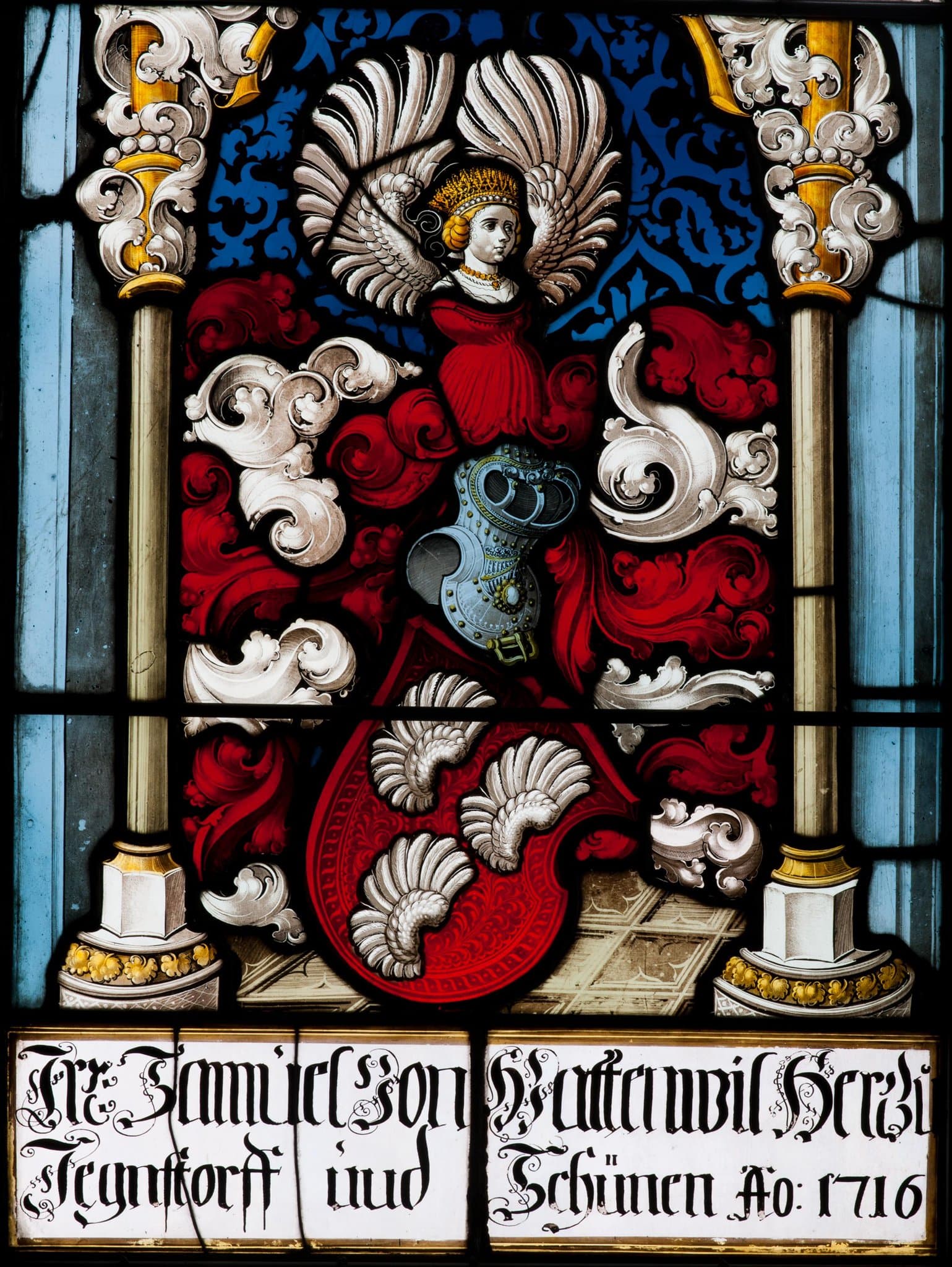 Die Scheibe mit dem Von-Wattenwyl-Wappen weist enge Parallelen zu den Scheiben der Stiftung Hans von Erlachs für die Kirche Jegenstorf auf (Bernisches Historisches Museum, Inv. 355–358) und lässt sich somit in die Jahre um 1515 datieren und Hans Funk zuweisen.
