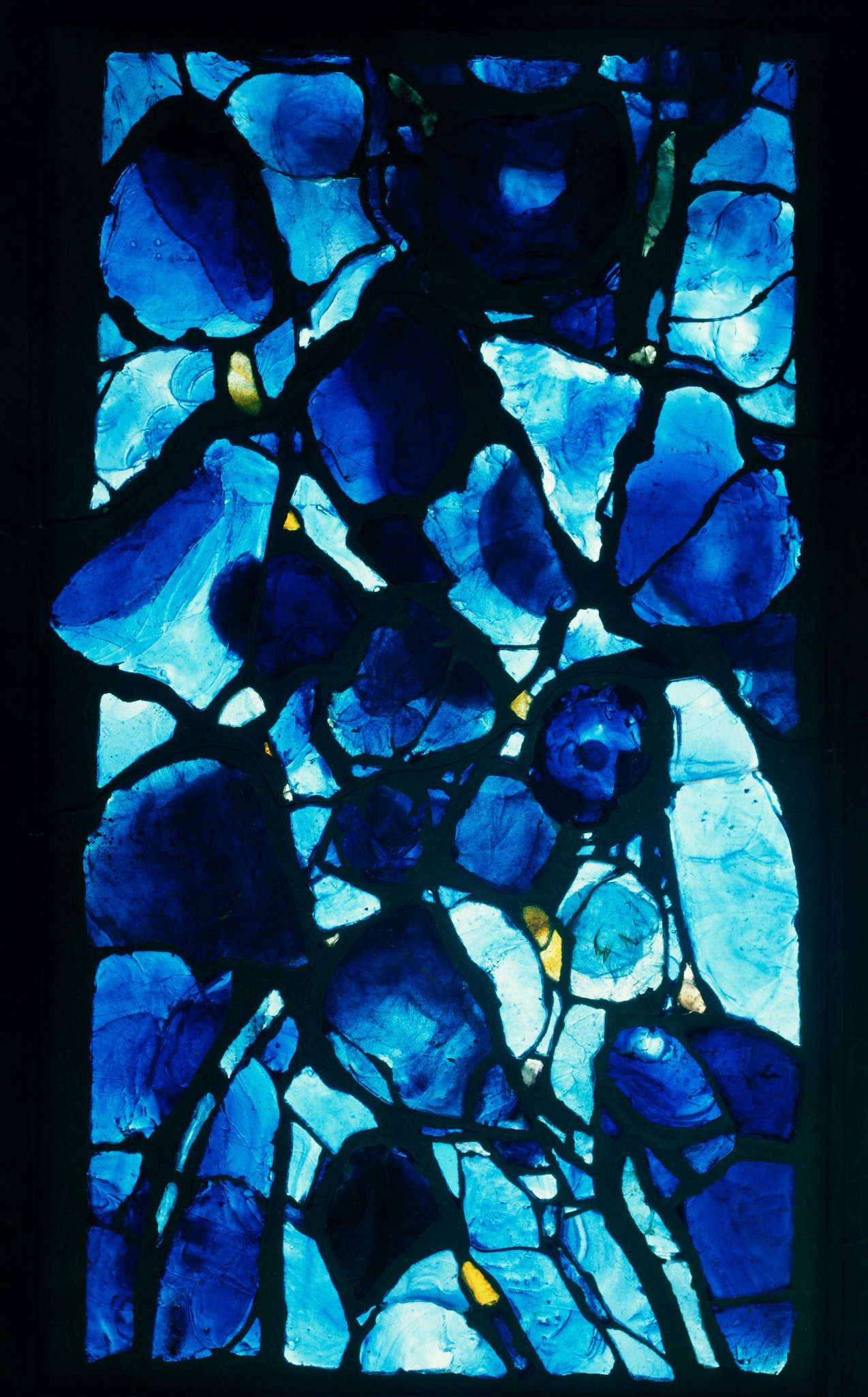 La raison pour laquelle la dalle de verre a été exposée au musée sous le titre “Incandescence bleue” et non “Pierre instable” n’est pas connue.