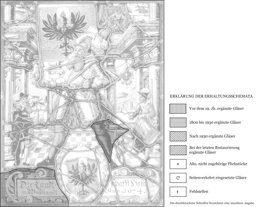 Die imposante Gestalt des Haslitaler Bannerträgers steht breitbeinig auf gelb-braun geschachtem Fliesenboden vor einer verkürzten zweistöckigen Säulen- und Pfeilergalerie, die den Blick auf eine Landschaft freigibt. Der die beiden Begleiter, einen Trommler und Pfeifer, in seiner hünenhaften Gestalt weit überragende bärtige Bannerträger ist in einen stahlblauen Halbharnisch mit Mühlsteinkragen sowie in rote Pluderhosen und Strümpfe gehüllt. Er ist mit Schwert und Schweizerdolch sowie einer um die Brust gebundenen grünen Schärpe ausgestattet. Zwischen seinen gespreizten Beinen findet sich Platz für das oval umkränzte Haslitaler Wappen, das die blau-gelbe Rollwerkkartusche mit der Stifterinschrift zentral überragt. Wie das untere bietet auch das obere Galeriegeschoss Aussicht in eine Landschaft. Diese dient als Schauplatz für Simsons Kampf mit dem Löwen (Ri 14,5f.).