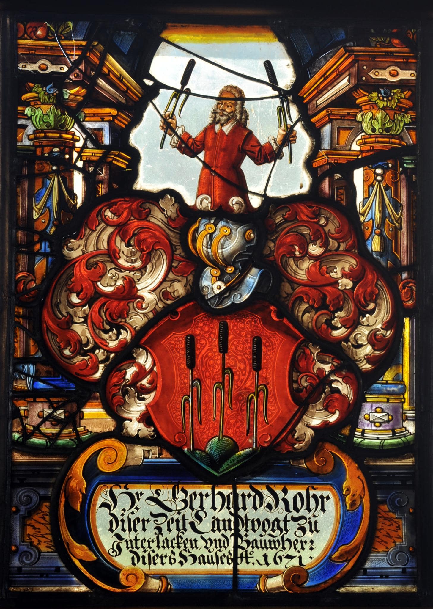 Wappenscheiben von Gerhard Rohr gibt aus dem Jahr 1671 in den Kirchen von Leissigen und Ringgenberg sowie aus dem Jahr 1673 in den Kirchen von Beatenberg und Gsteig.