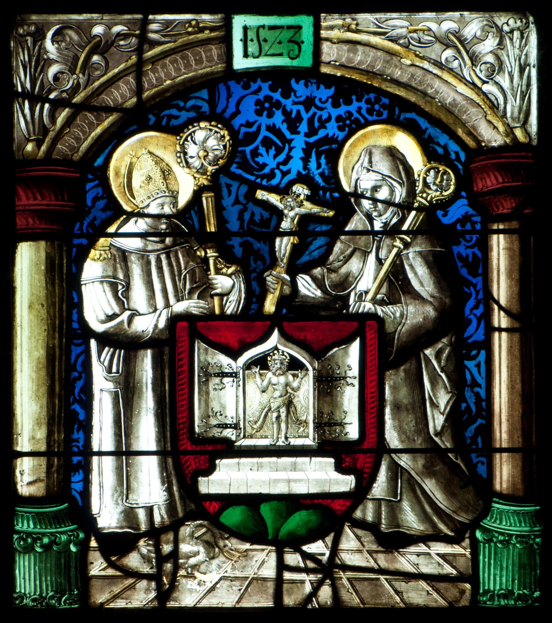 Wappenscheibe Kartause Thorberg mit hl. Hugo und hl. Paula