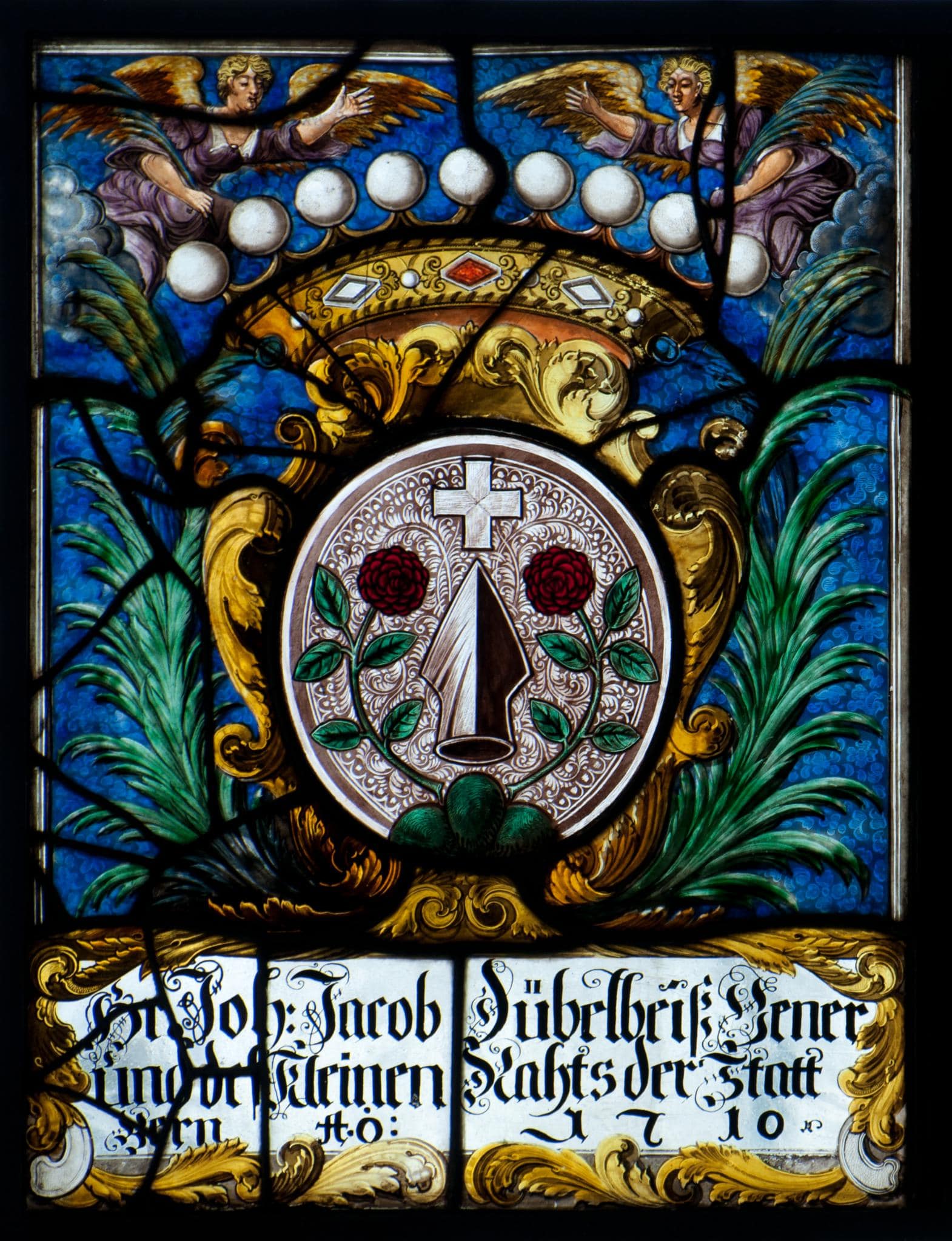 Hr [Jo]h: Jacob Dübelbeiß Vener / und des Kleinen Rahts der Statt / Bern A.O: 1710 (in eckigen Klammern der ergänzte Teil).