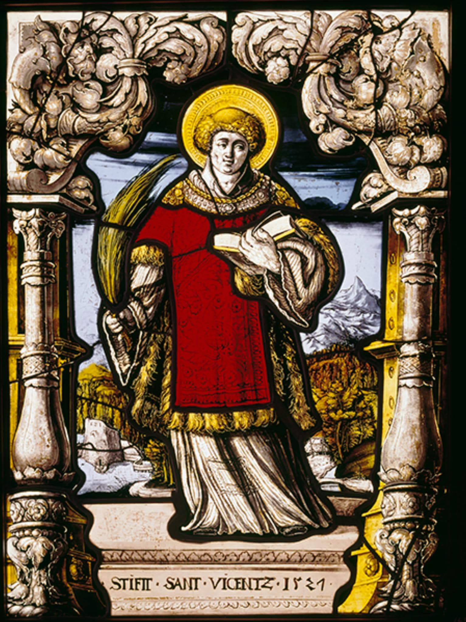 Figurenscheibe Stift St. Vinzenz Bern mit hl. Vinzenz