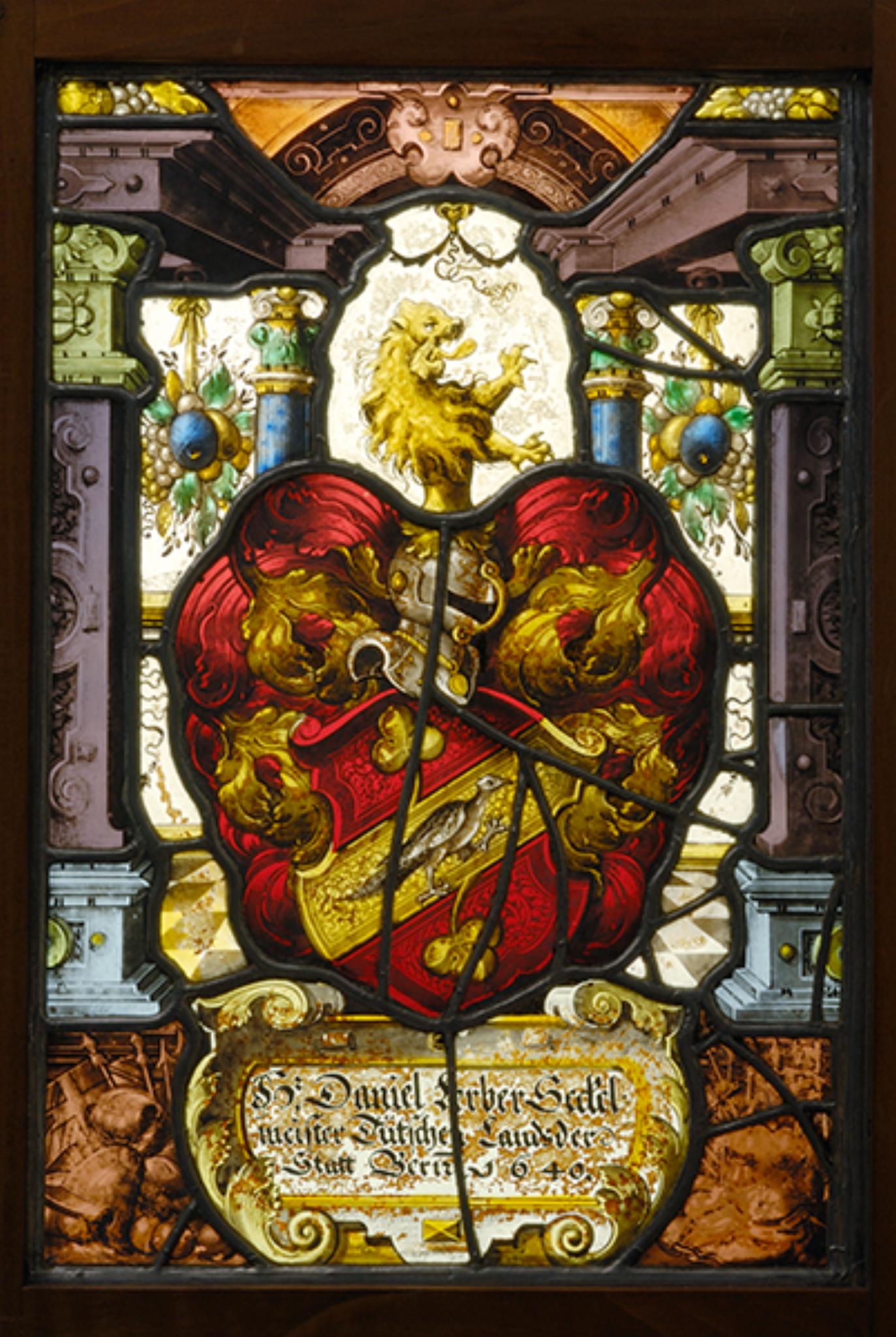 Von Daniel Lerber gibt es drei Glasgemälde in Kirchen, eines von 1630 in derjenigen von Münchenbuchsee, eines von 1638 in derjenigen von Oberwil bei Büren und eines von 1643 in derjenigen von Unterkulm im Kanton Aargau (Hasler 2002, Kat.-Nr. 161). Die vorliegende Scheibe stiftete er 1640 als Seckelmeister. Verschollen sind die drei Glasgemälde, die er 1596 (Kat. Helbing 1910, Nr. 210), 1630 für das Pfrundhaus von Thunstetten (Kasser 1909, S. 128, 383) und 1634 (SNM Zürich, Foto-Neg. 22316) in Auftrag gab. In der Sammlung Wyss des Bernischen Historischen Museums sind zudem drei Risse zu Wappenstiftungen Lerbers erhalten (Hasler 1996/97, Bd. 1, Kat.-Nrn. 55, 73, 355).