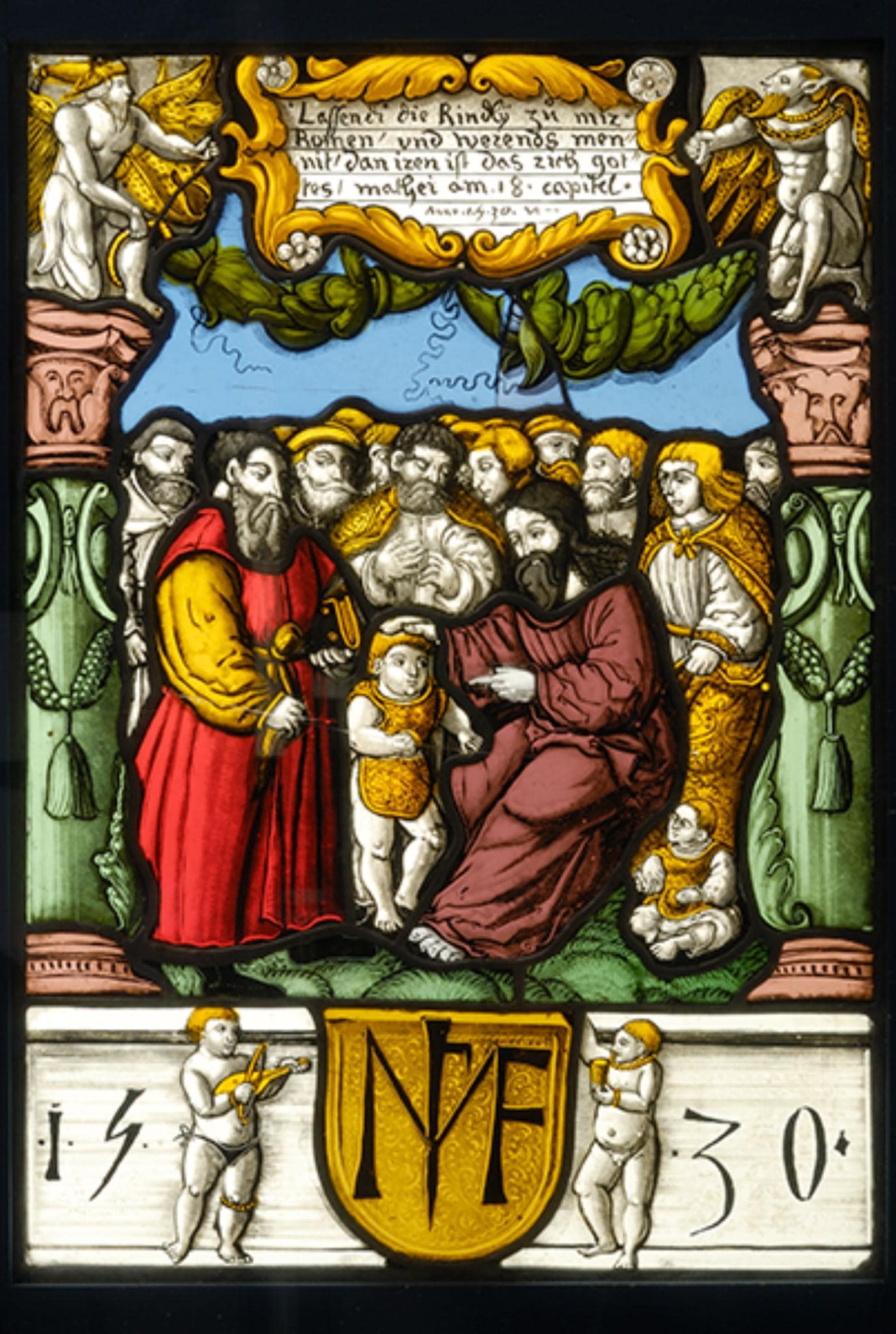[Lassendi die Kindlÿ zů mir / komen vnd werends inen= / nit dan iren ist das rich got= / tes mathei am 18 capitel / Anno 1530.]
