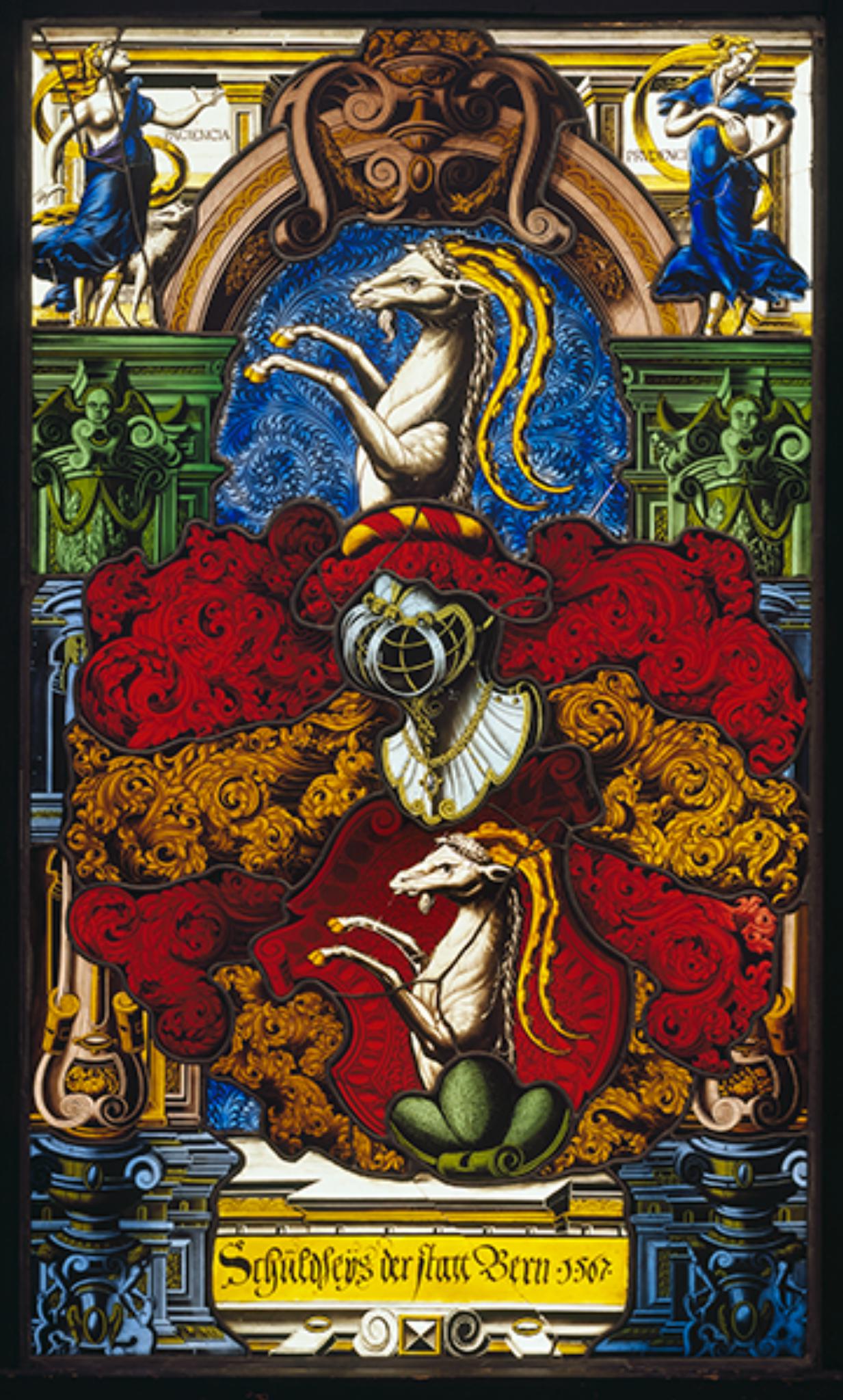 ... Schuldheÿs der statt Bern 1567 (Inschrift über beide Scheiben).