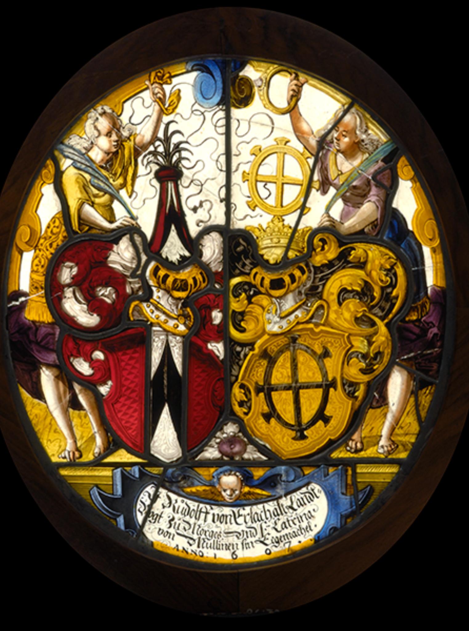 J. Růdolff von Erlach alt Landt= / Vogt Zů Morges vnd F. Catrina / von Müllinen sin Eegemachel / ANNO 1607.