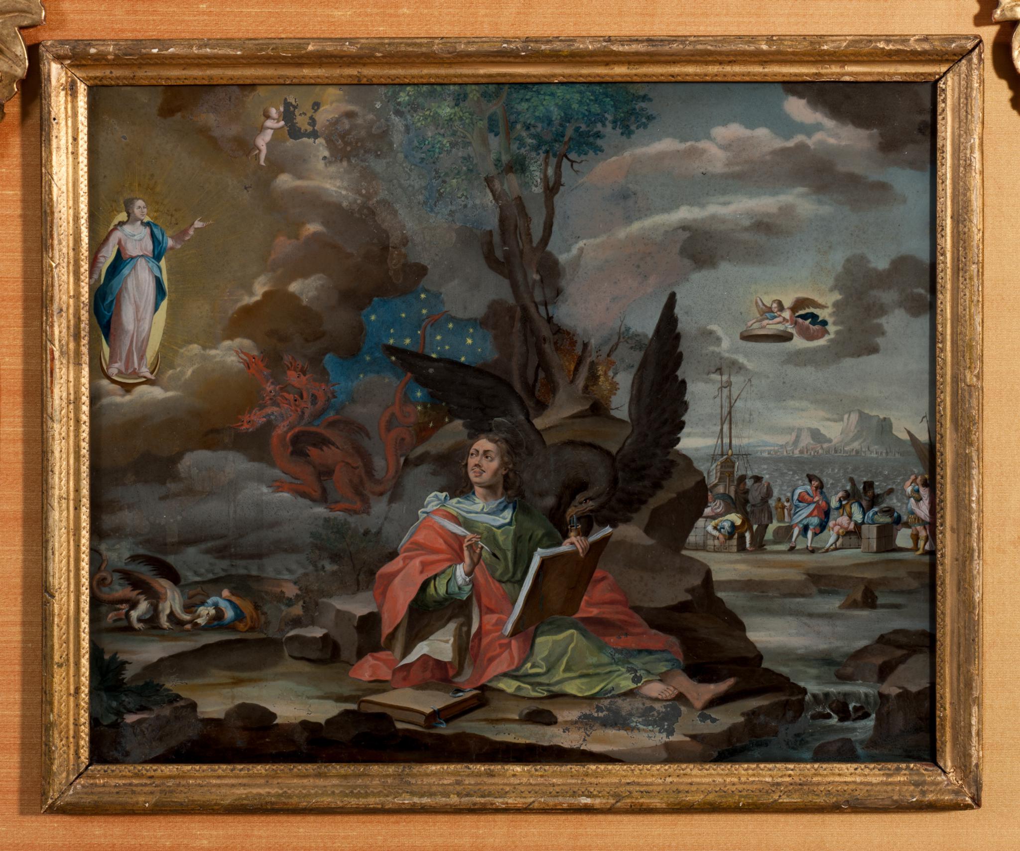 Die Vision des hl. Johannes auf Patmos bei der Niederschrift der Apokalypse