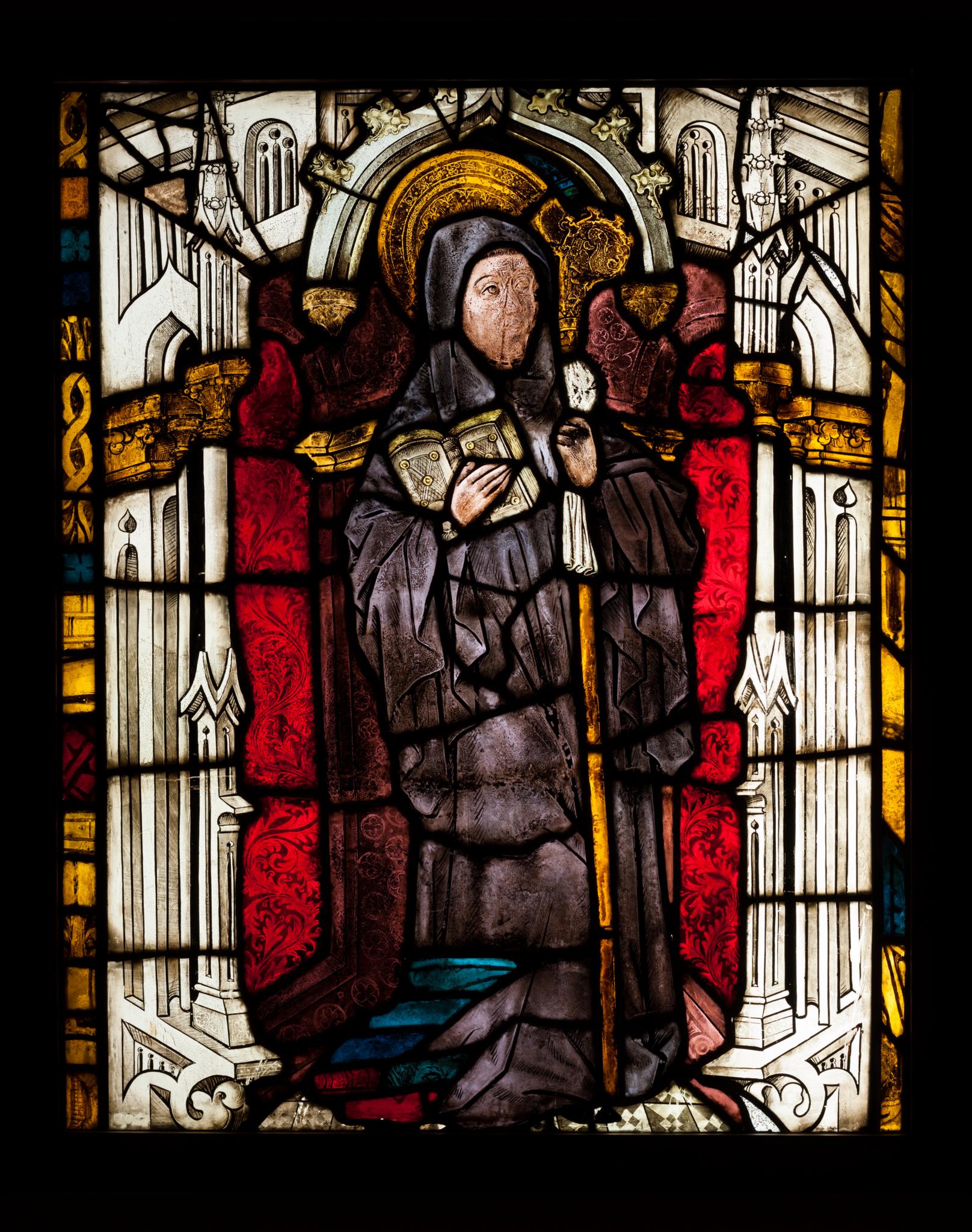 Sainte Scholastique, panneau d’un vitrail provenant de l’abbaye cistercienne de la Fille-Dieu à Romont