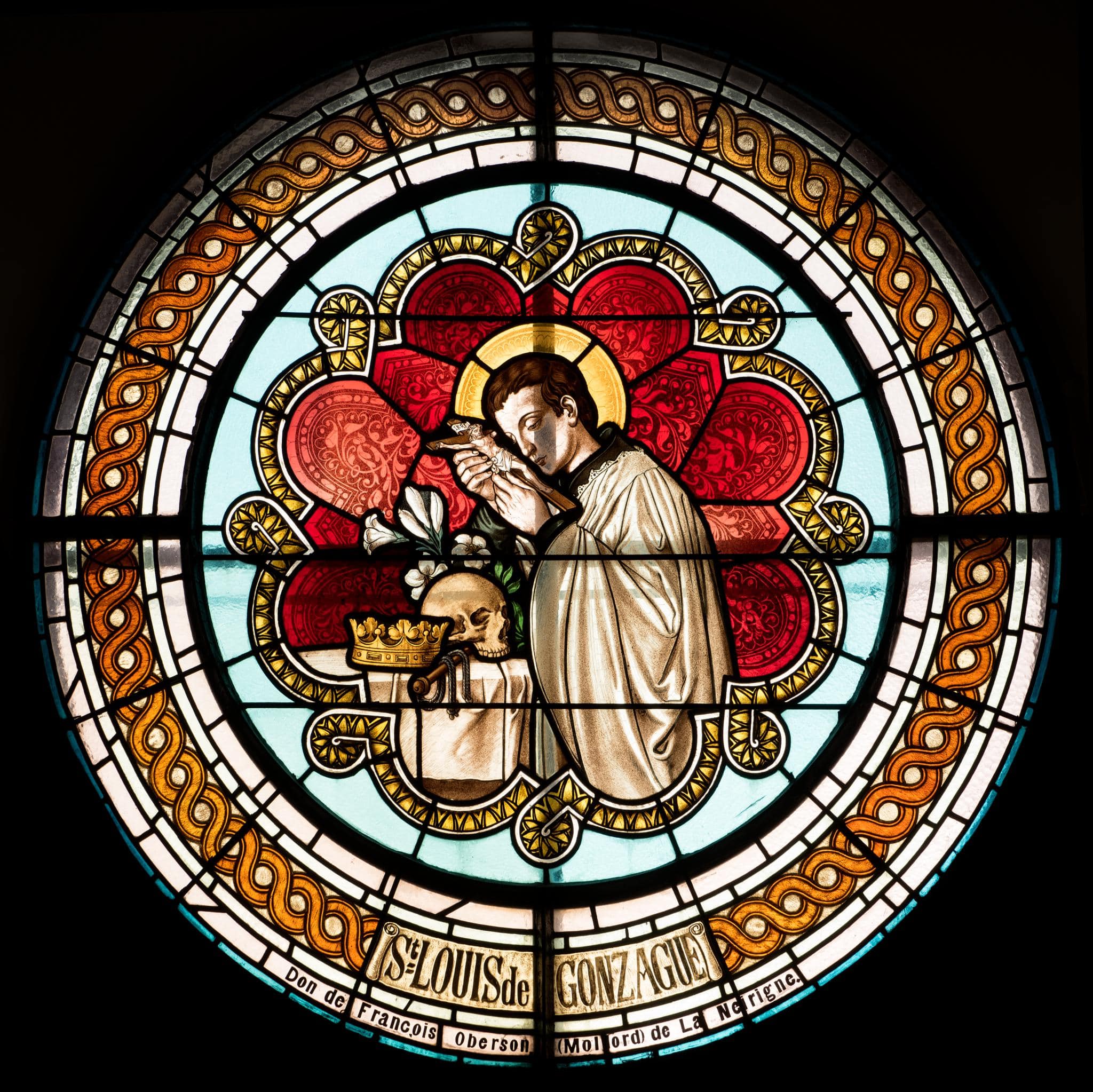 Cette verrière se situe dans la troisième fenêtre de droite de la nef de l’église Notre-Dame-de-la-Nativité de Vuisternens-devant-Romont, important édifice néo-classique du canton de Fribourg (Lauper, 2012, p. 204). Le cycle des vitraux de cette église a été réalisé par l’atelier Kirsch & Fleckner en 1906. Ce vitrail est un don de François Oberson de la Neirigne, comme l’indique l’inscription s’y trouvant.