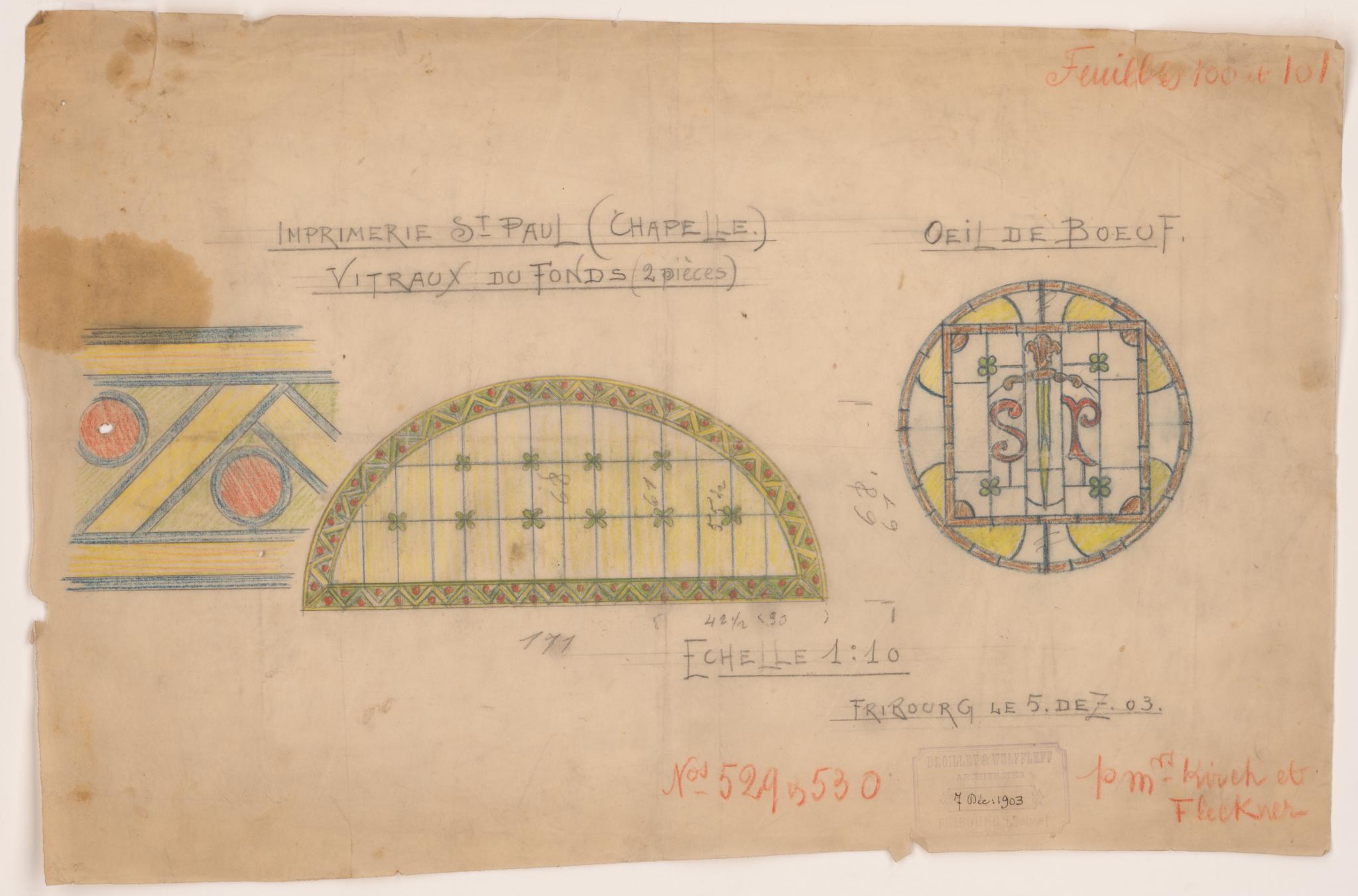 BROILLET & WULFFLEFF / ARCHITECTES / 7 Déc : 1903 / FRIBOURG [Suisse] (sceau en bas à droite)