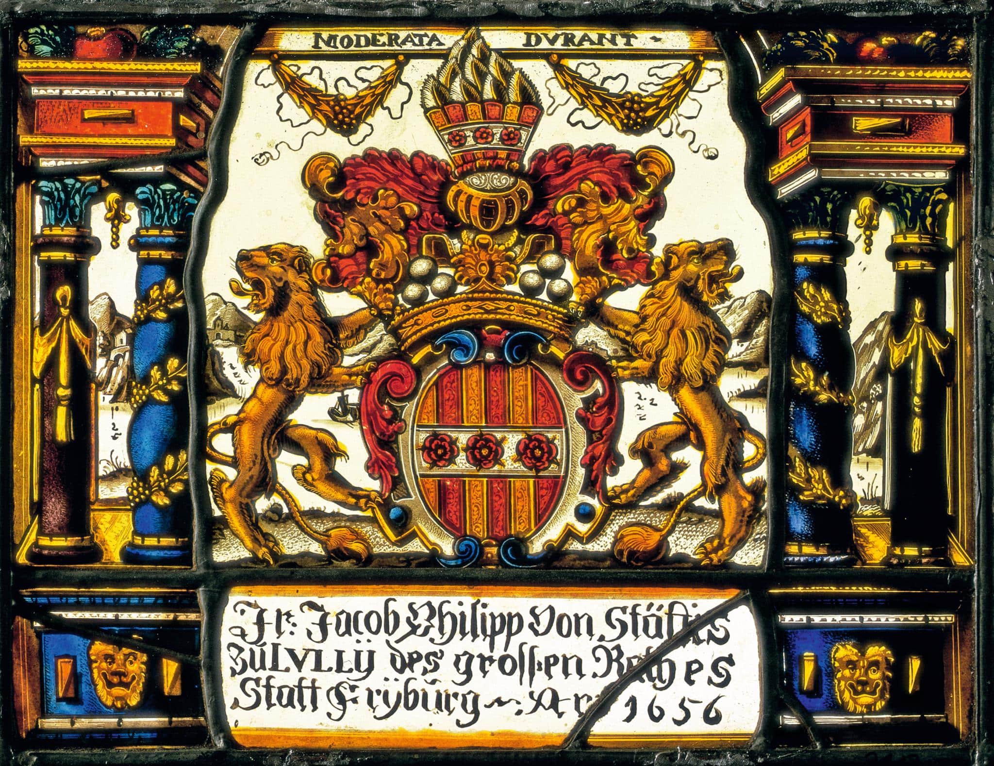Stifterinschrift: Jr: Jacob Philipp von Stäf[is] / zu Lvllÿ des grossen Rat[hes] / Statt Frÿburg An [1656] [ergänzt].