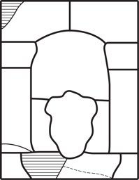 Farbloses, blaues und grünes Glas. Rotes Überfangglas mit rückseitigem Ausschliff. Bemalung mit Schwarzlot und Silbergelb in verschiedenen Farbstufen, wenig Eisenrot.
