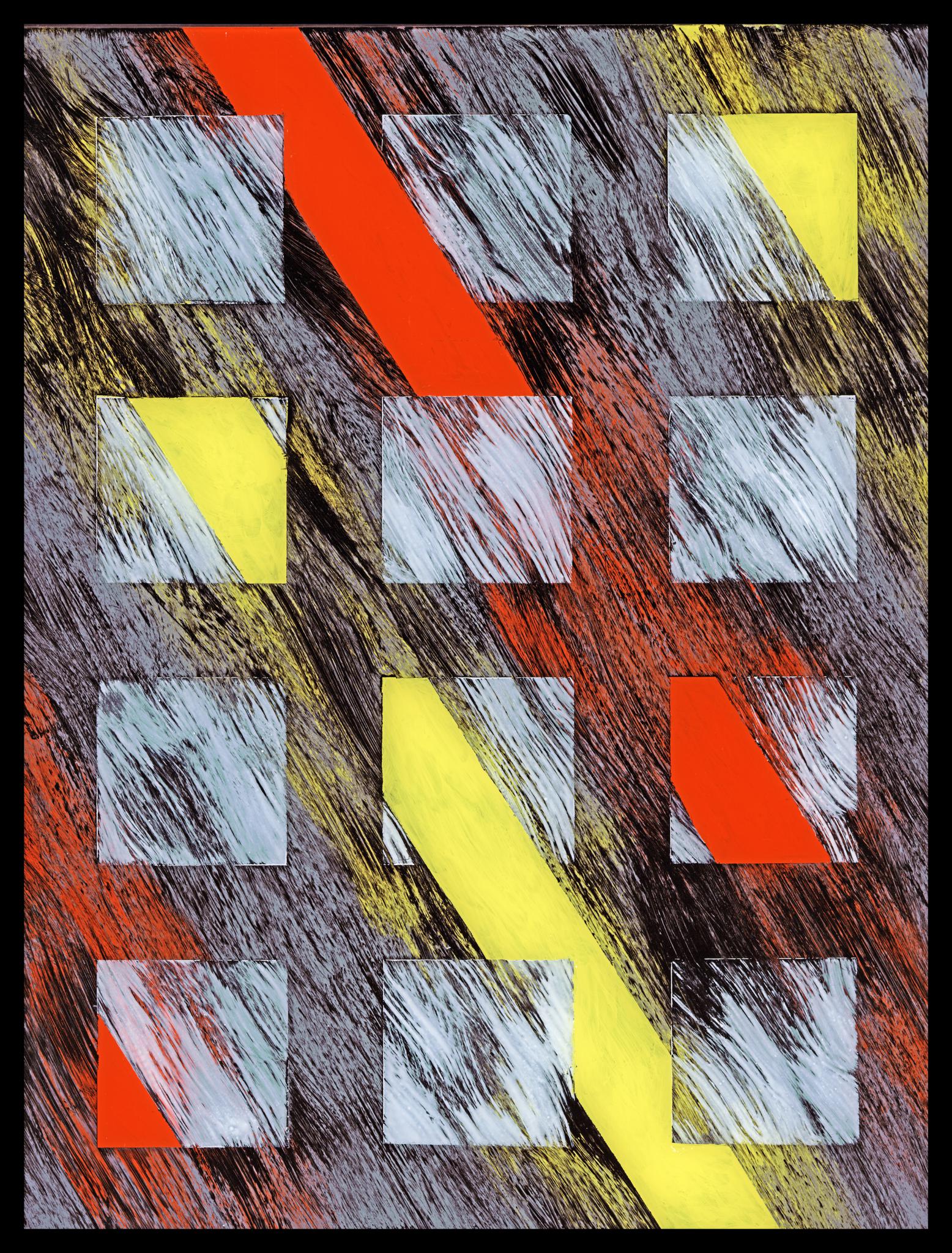 Über sechs Jahrzehnte hat Jochem Poensgen hauptsächlich monumentale, architekturbezogene Glasfenster geschaffen. Seit 2013 setzt er sich mit der besonderen Technik der Hinterglasmalerei auseinander. Für ihn erweist sich diese Kunstgattung als weitläufiges, fruchtbares Experimentierfeld für seine abstrakte Bildsprache. Er erkundet die Komplexität der Festlegung von Vorder- und Hintergrund, indem er während des Malprozesses die Dicke der Farbschicht variiert, die je nach Darstellung opak oder durchscheinend sein kann. Die Farben verschmelzen ineinander, manchmal überschneiden sie sich. Abstrakte, minimalistische Motive aus freien Formen werden mit geometrischer Strenge kombiniert, die das Wesen seiner Glasmalereien bildet. Die exakte Abgrenzung geometrischer Figuren und ihrer streifenartigen Struktur erfordern vom Künstler ein planmässiges Vorgehen in mehreren Arbeitsgängen.