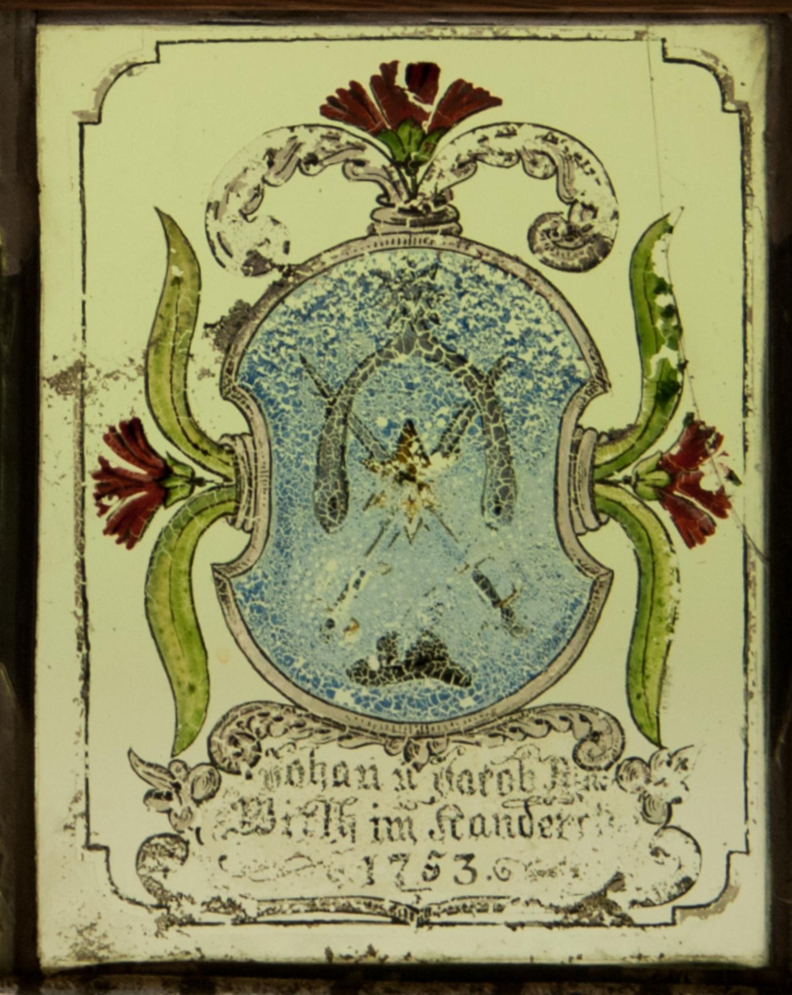 Wahrscheinlich handelt es sich beim Stifter der Scheibe um Hans (Johannes) Ryter (04.03.1731), Sohn des David und der Susanna Germann. 1754 heiratete er Magdalena Grossen (1732–1756/62), 1763 Margaretha Gysler und 1782 Susanna Brügger. Er hatte einen Bruder Jakob (1728–1754/57), der 1754 Barbara Müller (*1730), Tochter des Jakob und der Anna Habegger, geheiratet hatte (Frutiger Geschlechter, 2016). Wie die Inschrift besagt, war Johann, wohl zusammen mit seinem Bruder Jakob, Wirt in Kandersteg.