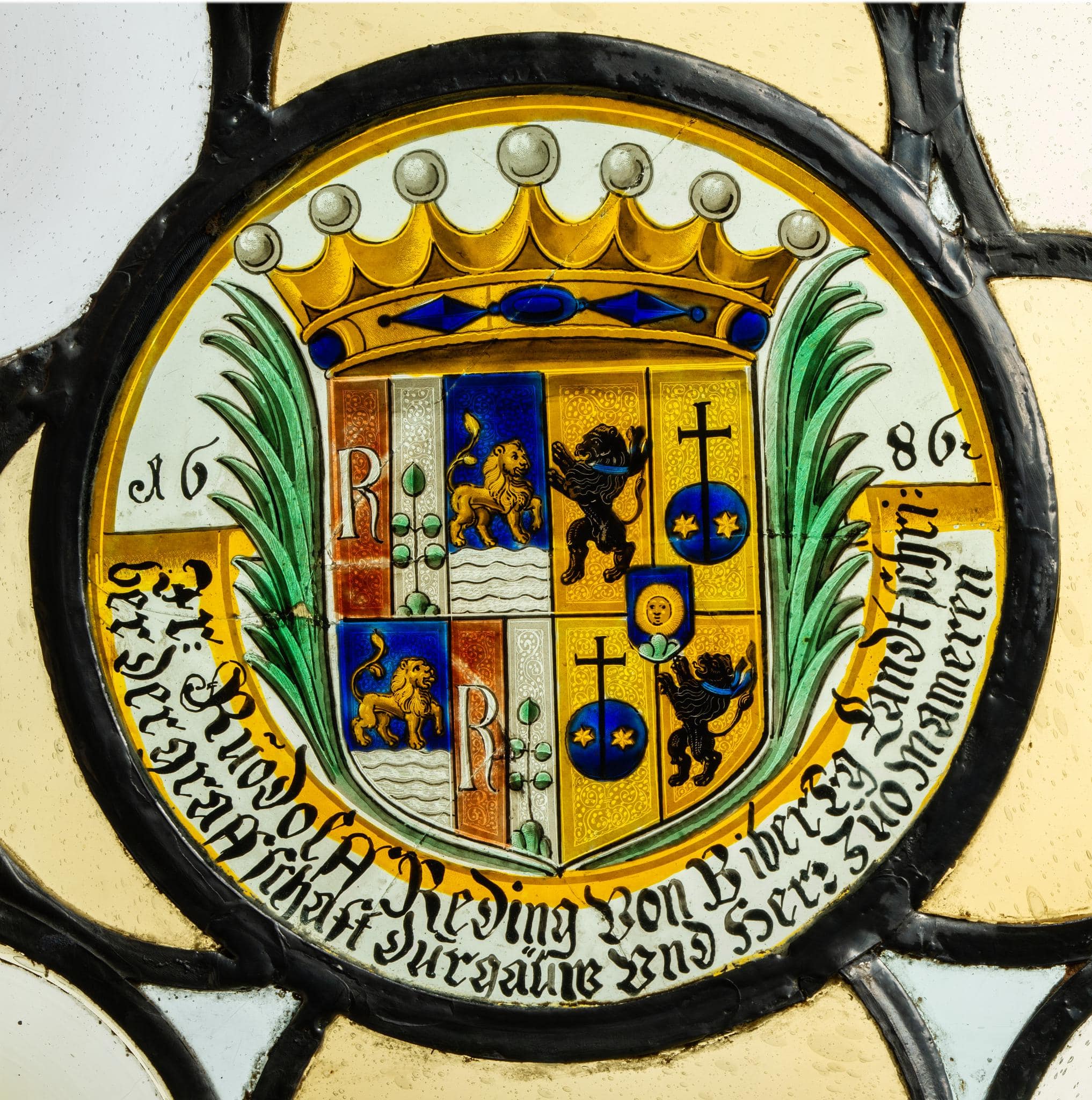 Runde Wappenscheibe Wolfgang Rudolf Reding von Biberegg und Esther von Beroldingen