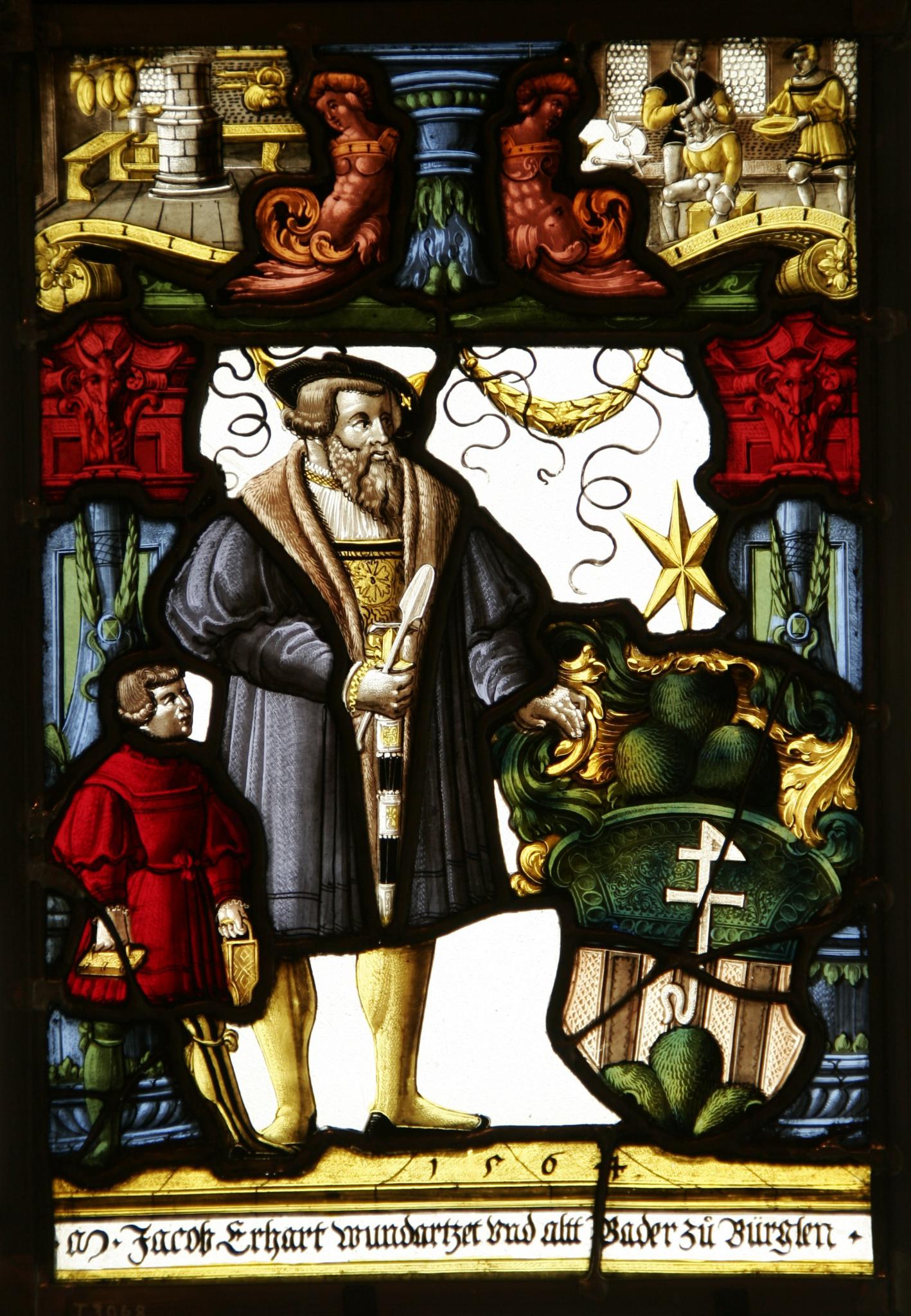 Jakob Erhart (vor 1528–nach 1564) erwarb im Jahr 1528 für 200 Gulden Badrecht und Badstube zu Bürglen im Kanton Thurgau. 1539 war er als herrschaftlicher Amtmann, von 1549–1558 auch als Schreiber der Herrschaft Bürglen tätig. Er war verheiratet mit Margretha Nussbaumer. Sein Sohn, Jakob II. († vor 1580), übernahm 1558 die Badstube (Gächter, 1967, S. 43).