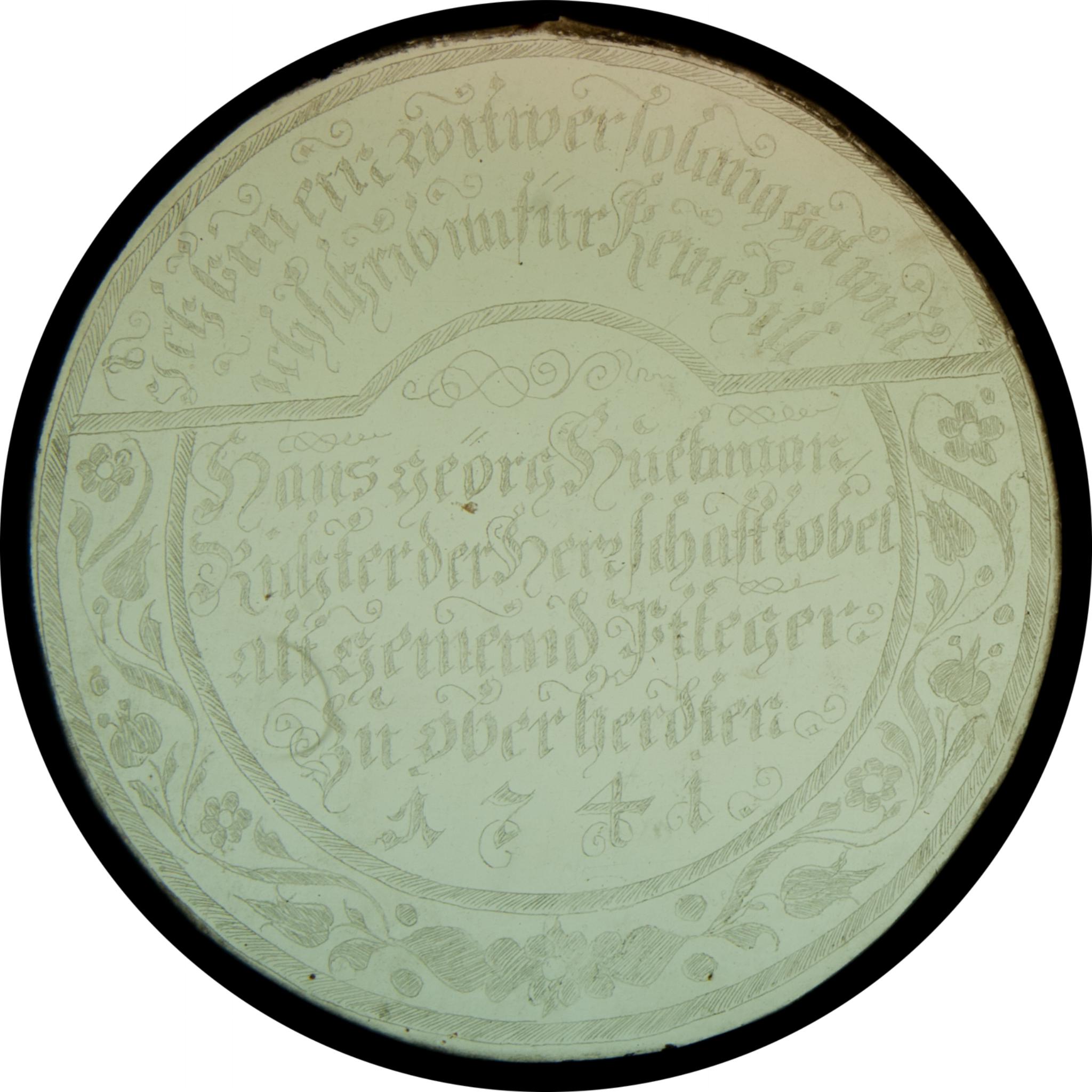 Hans Georg Hubmann war laut Inschrift 1741 Richter in der Herrschaft Tobel, ehemaliger Gemeindepfleger in Oberherten (Teil der Herrschaft Tobel) sowie Wittwer.