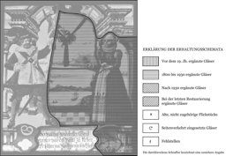 Vor einer Seelandschaft steht sich das Stifterehepaar auf einem Fliesenboden gegenüber. Die Frau reicht dem Hellebarde tragenden Mann eine Blume. Eine dreiachsige Architektur mit Fruchtgehänge rahmt die beiden Figuren. Am unteren Bildrand befindet sich das mit den Wappen belegte und beschriftete Podium.