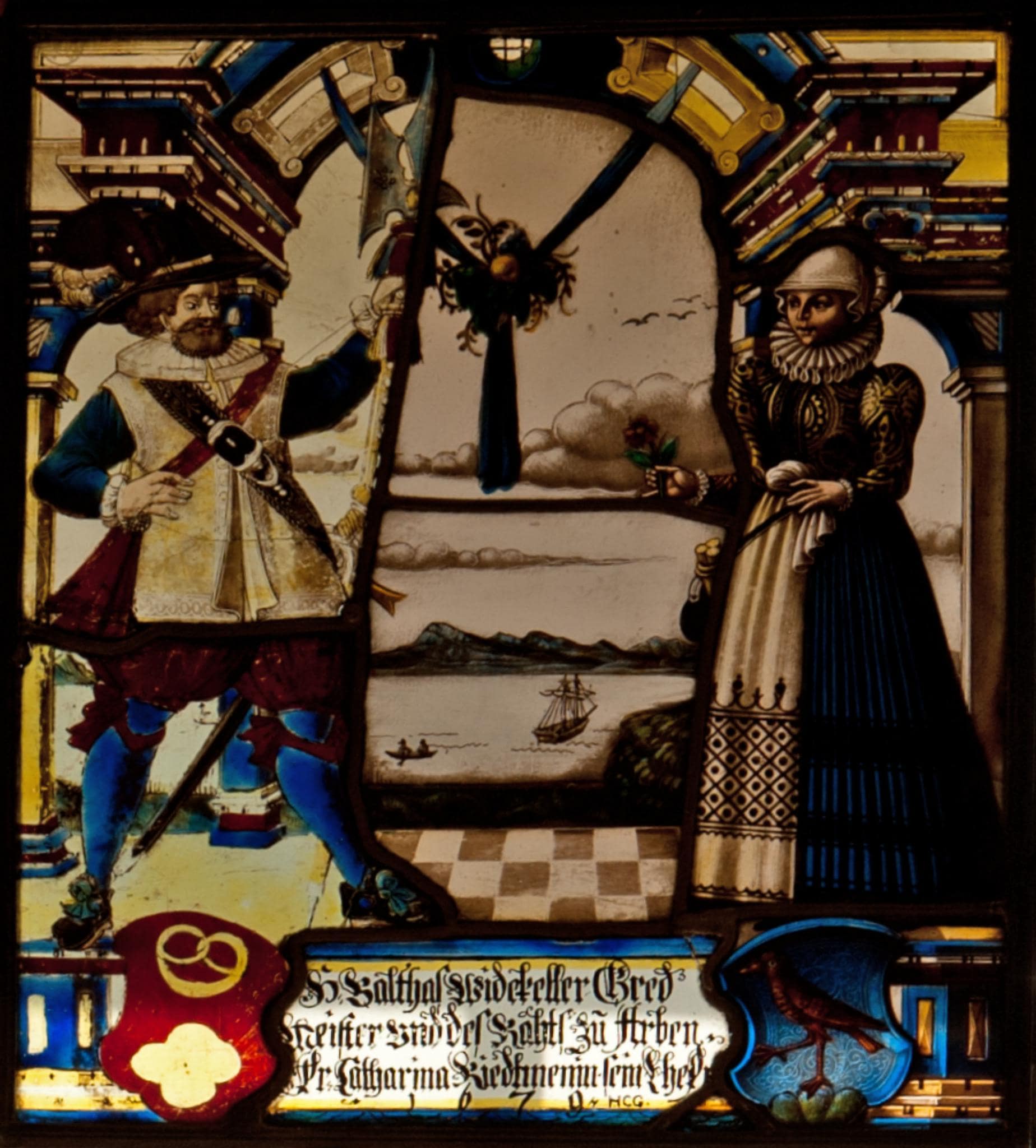 H. Balthas Widekeller Gred / meister vnd des Rahts zu Arben. / Fr Catharina Riedtmenin sein Ehefr. / 1679