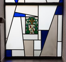Wappen von Streng, Franz: Geviert, 1 und 4 in Silber roter bischöflicher Krummstab, 2 und 3 in Silber aus linkem Schildrand hervorgehender, gepanzerter Arm, in der natürlichen Hand schräglinks, blaues Schwert mit goldenem Griff.